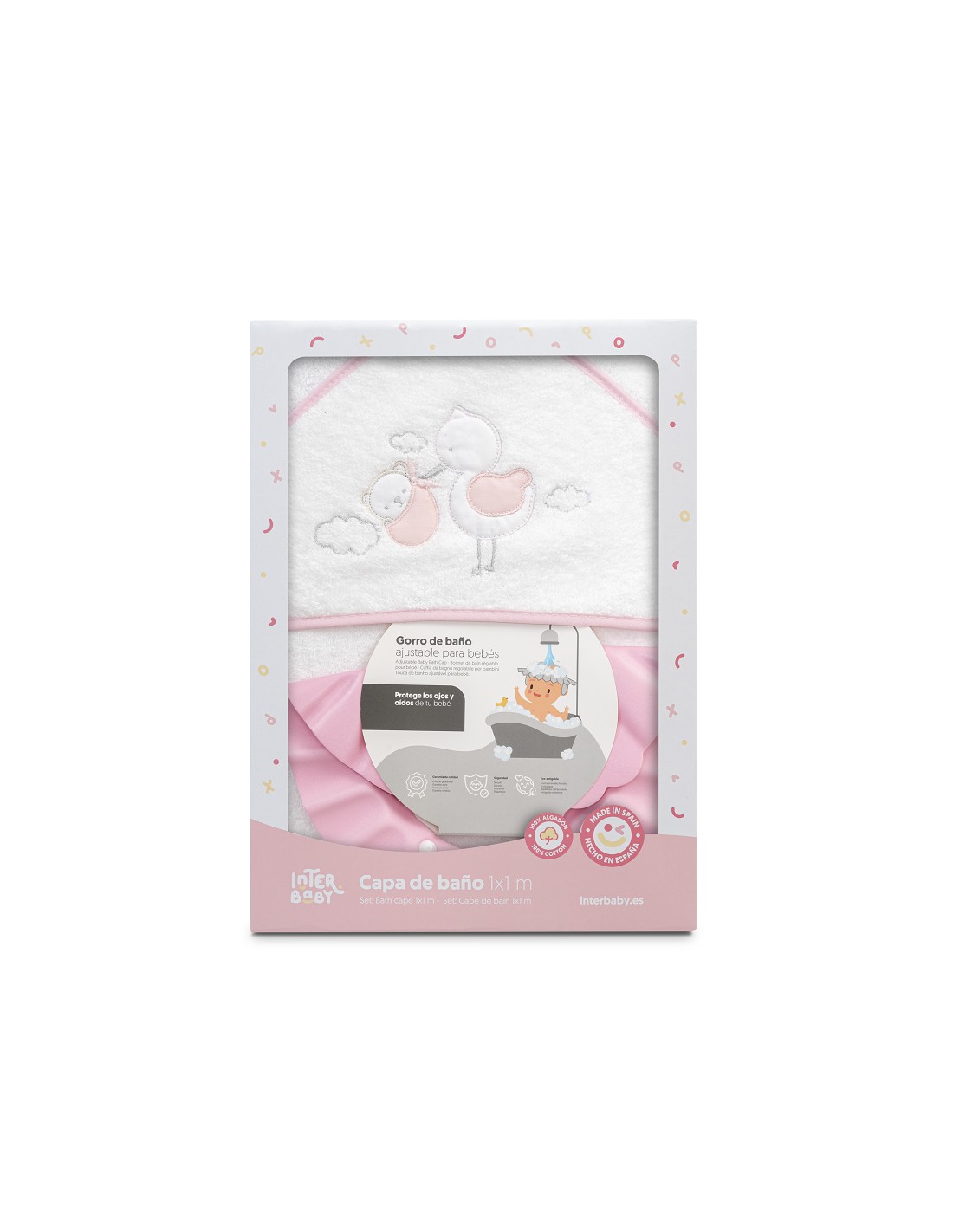 Capa Baño 1X1 Mod Cigueña Oso+Gorro Bco/Rosa