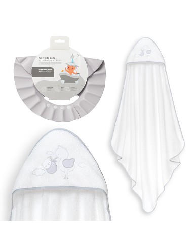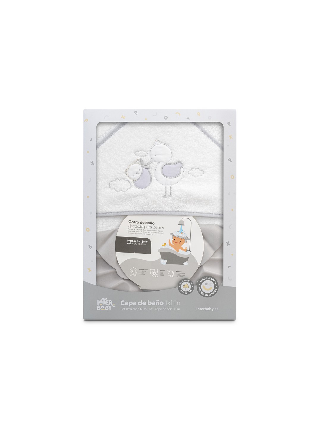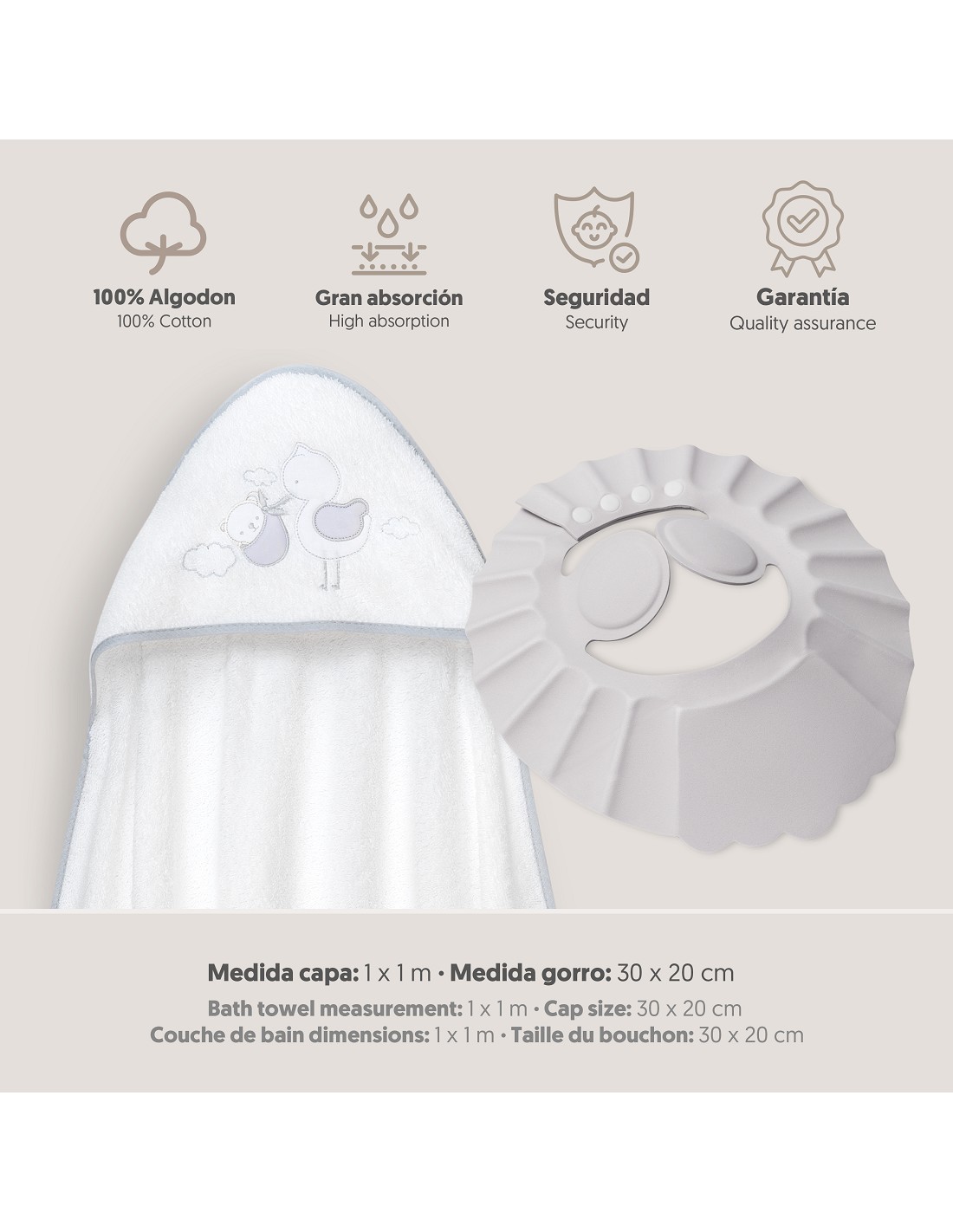 Capa Baño 1X1 Mod Cigueña Oso+Gorro Bco/Gris