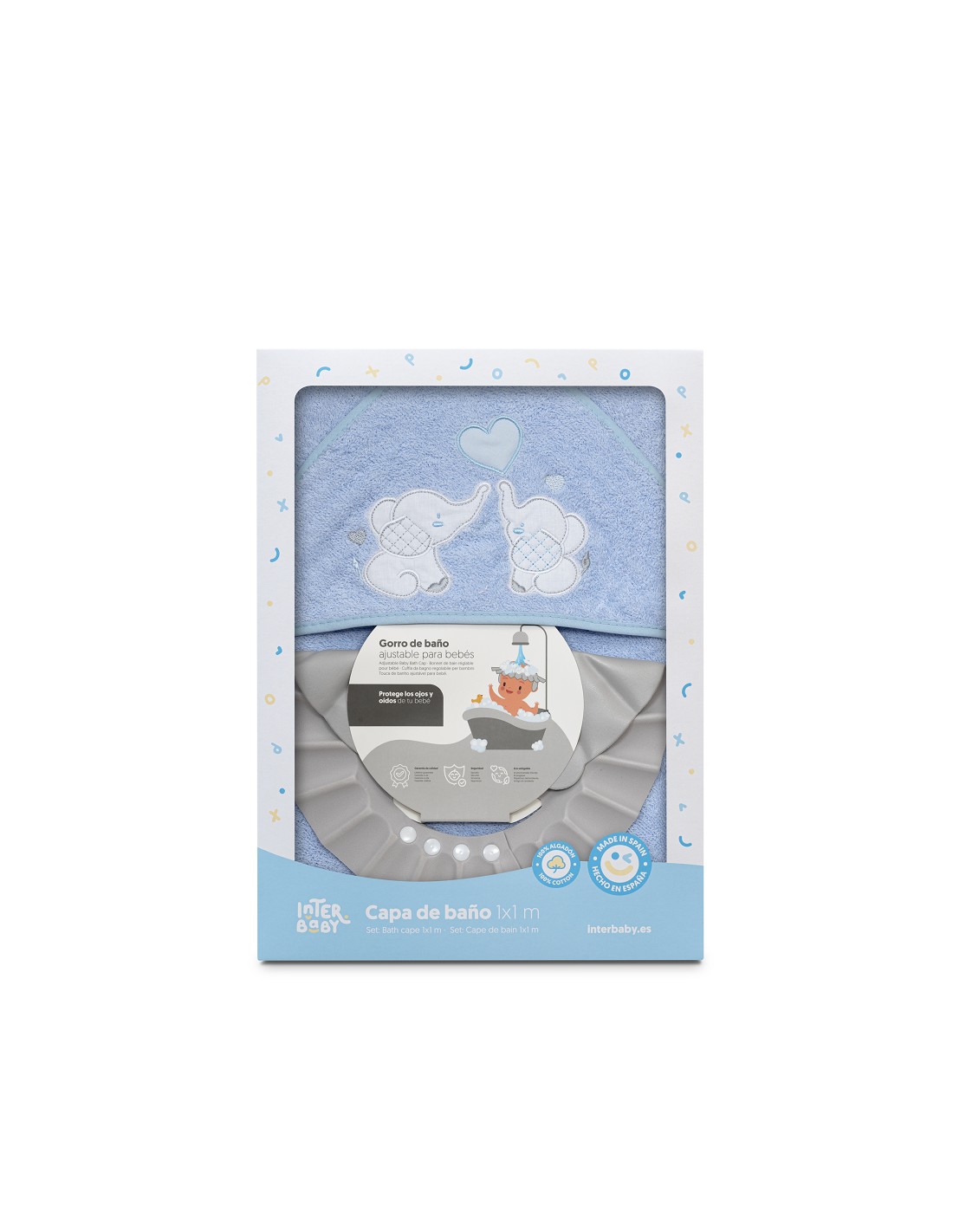 Capa Baño 1X1 Mod Parejita Elefante+Gorro Azul