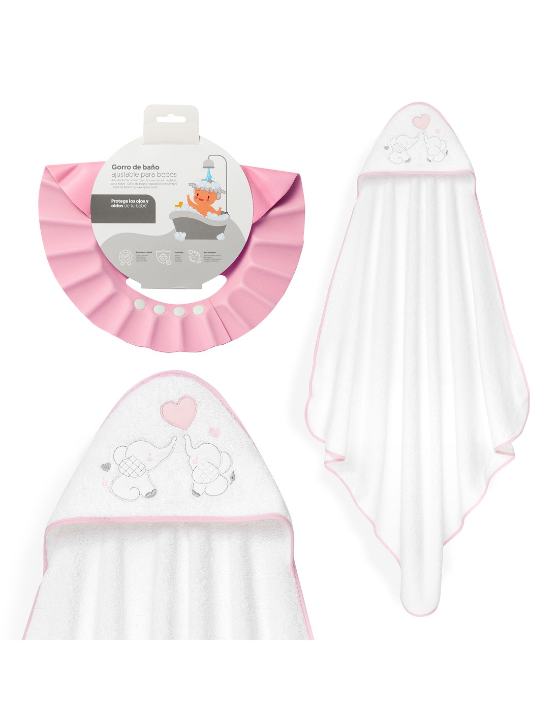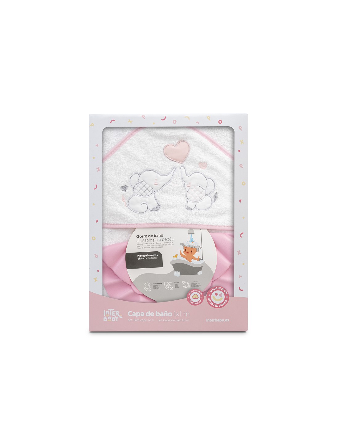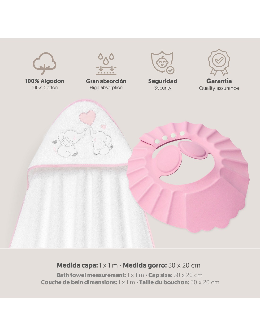 Capa Baño 1X1 Mod Parejita Elefante+Gorro Bco/Rosa