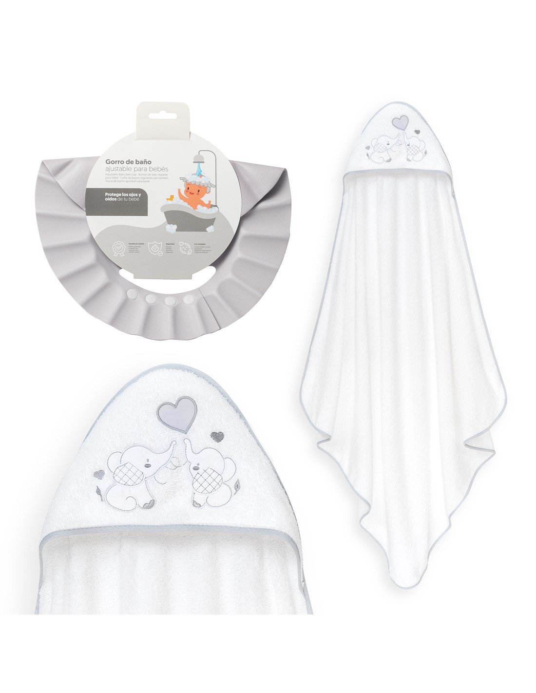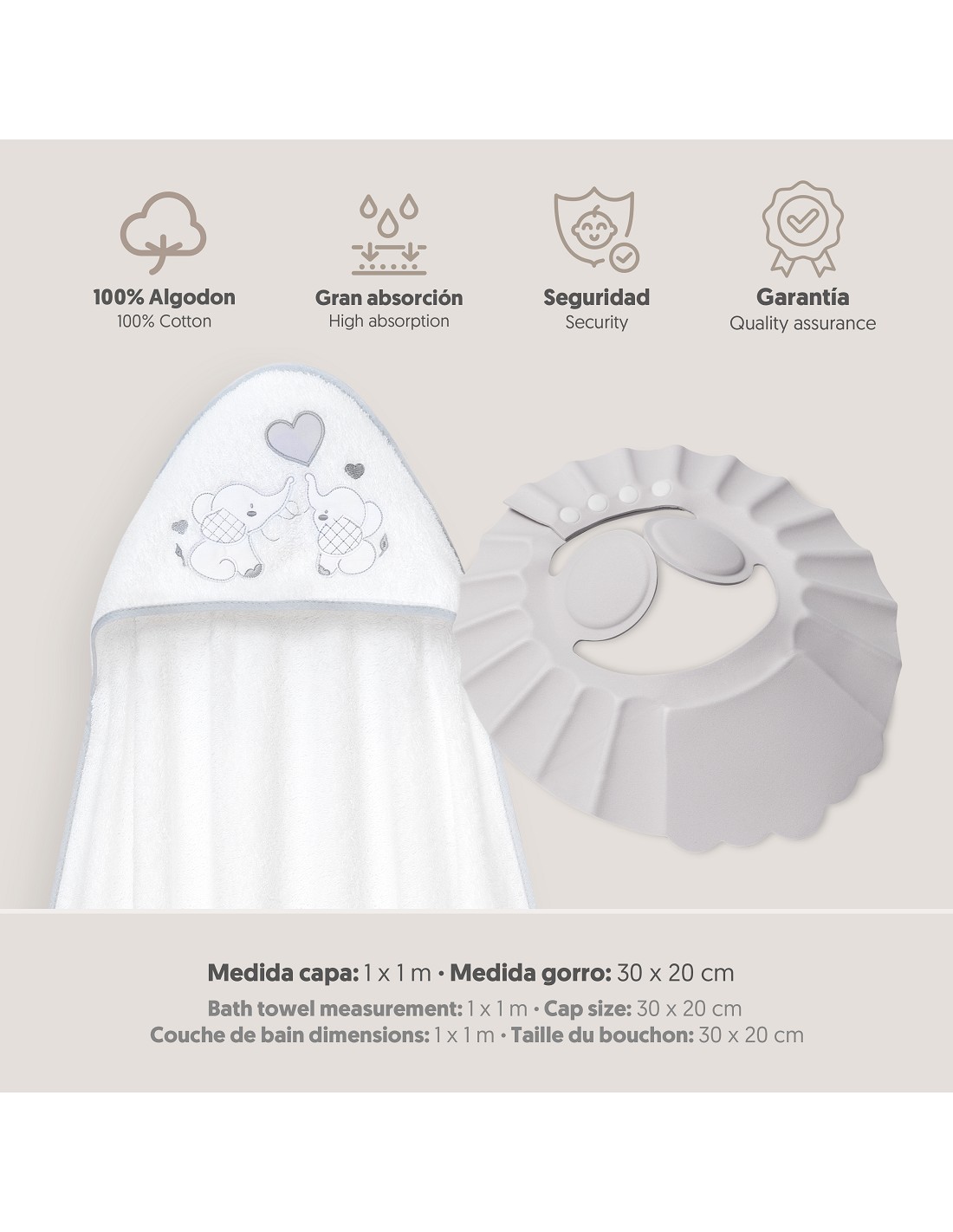 Capa Baño 1X1 Mod Parejita Elefante+Gorro Bco/Gris