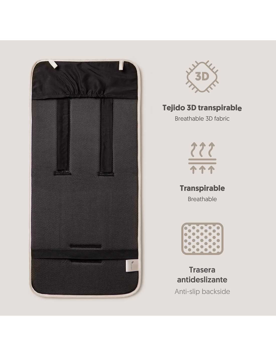 Colchoneta para silla de paseo universal transpirable + protector de cinturón. Tejido 3D transpirable. Fabricado con la última tecnología para mantener fresco y seco a tu bebé. Adaptable a cualquier silla de paseo.