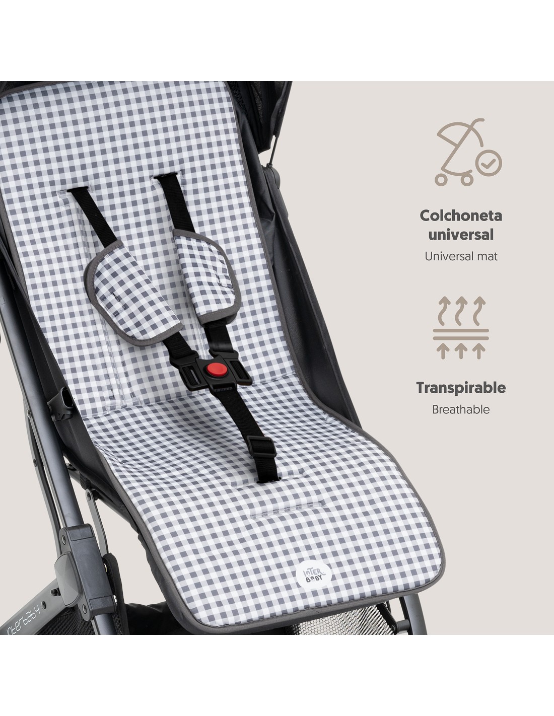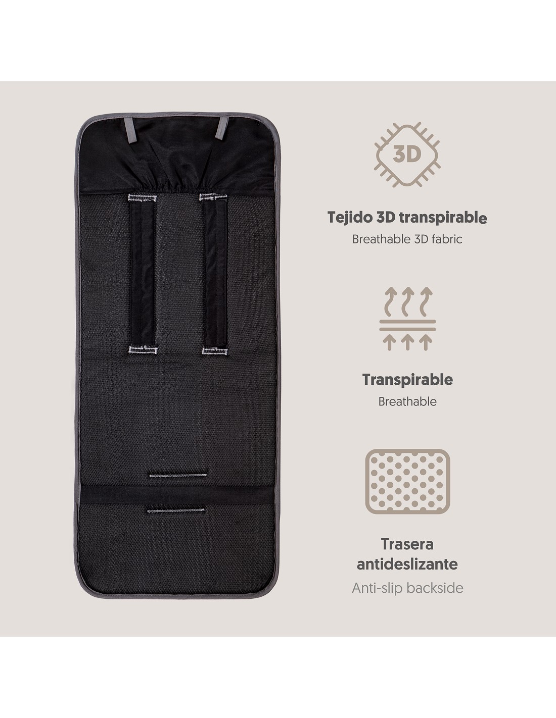 Colchoneta para silla de paseo universal transpirable + protector de cinturón. Tejido 3D transpirable. Fabricado con la última tecnología para mantener fresco y seco a tu bebé. Adaptable a cualquier silla de paseo.