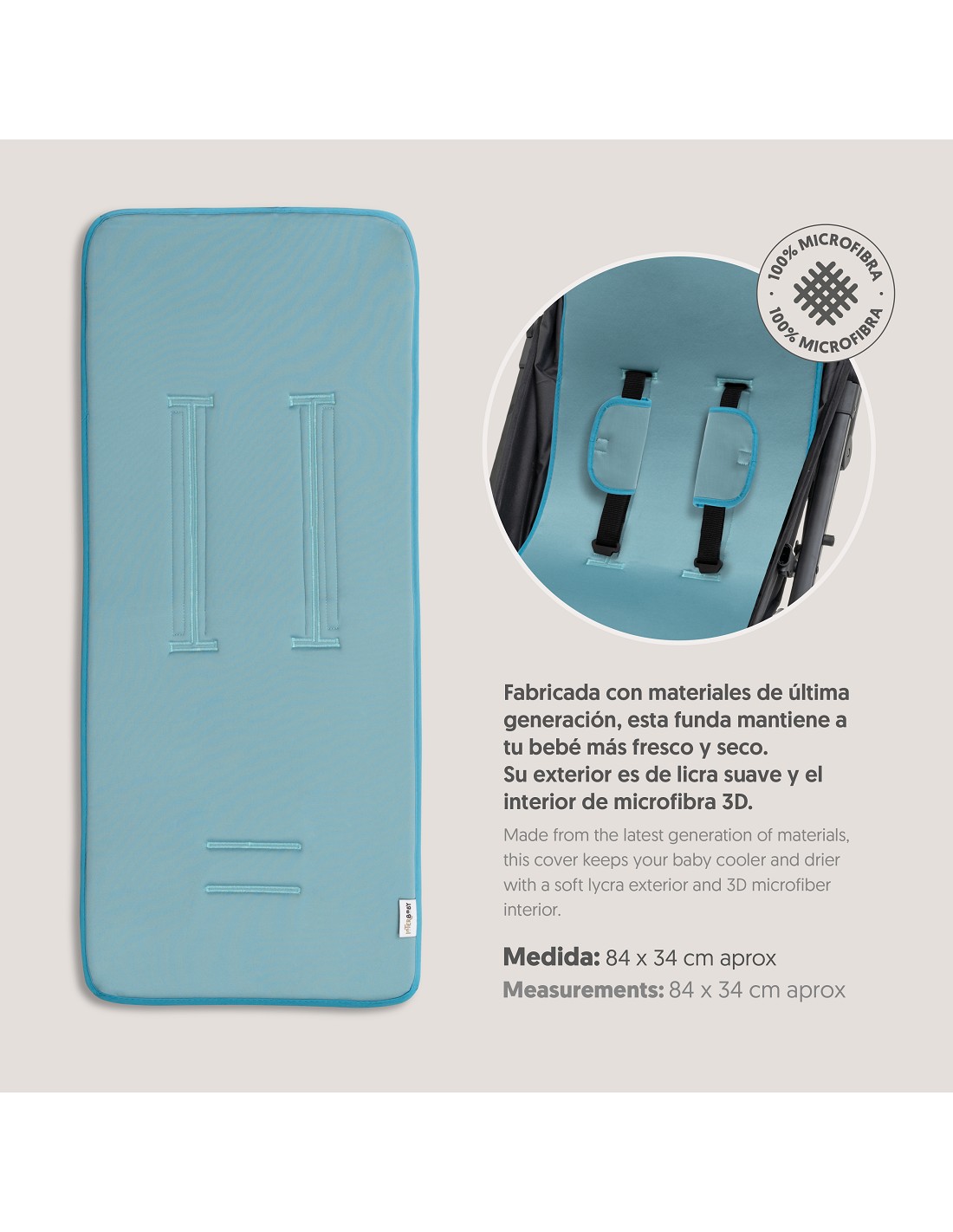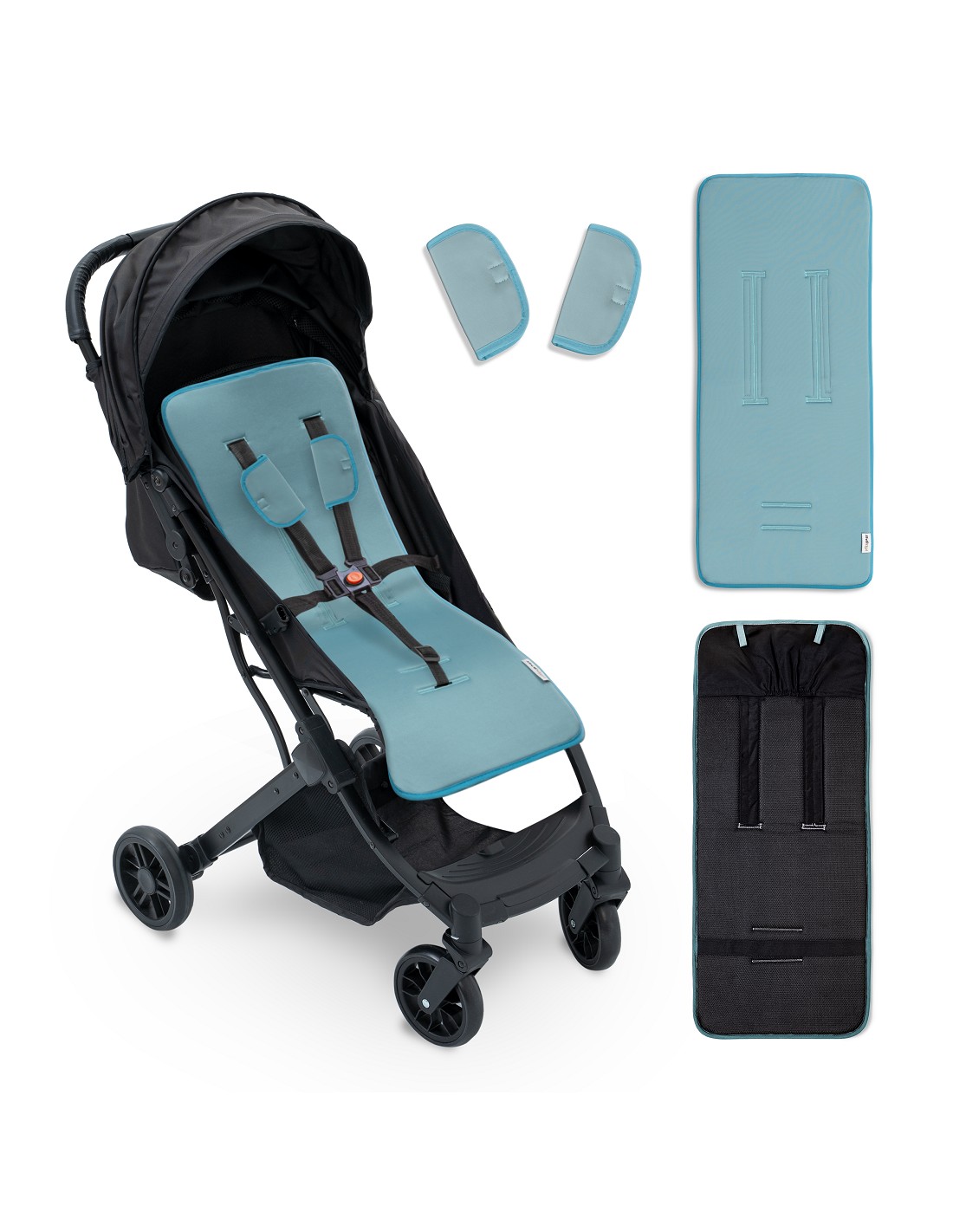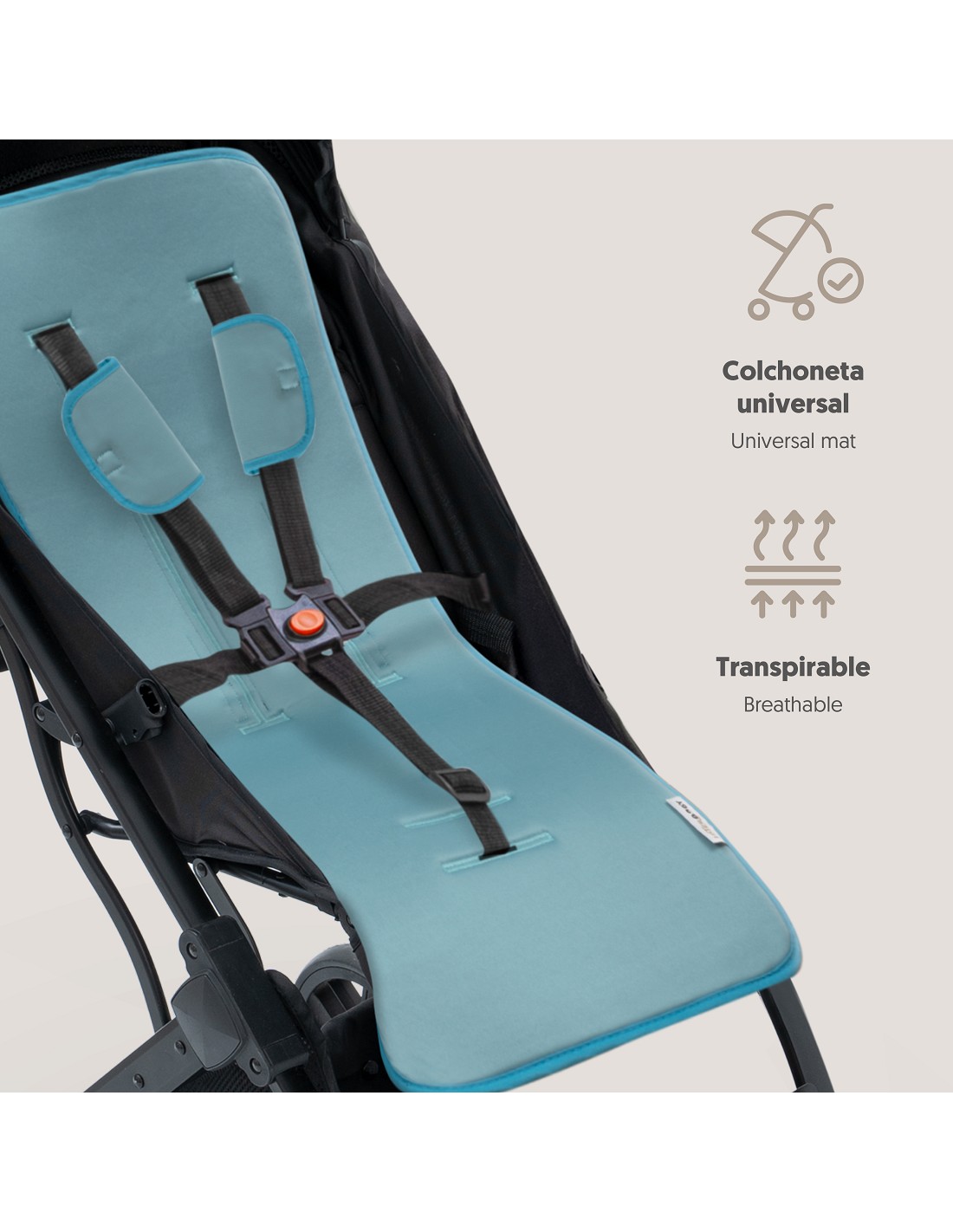 Colchoneta para silla de paseo universal transpirable + protector de cinturón. Tejido 3D transpirable. Fabricado con la última tecnología para mantener fresco y seco a tu bebé. Adaptable a cualquier silla de paseo.