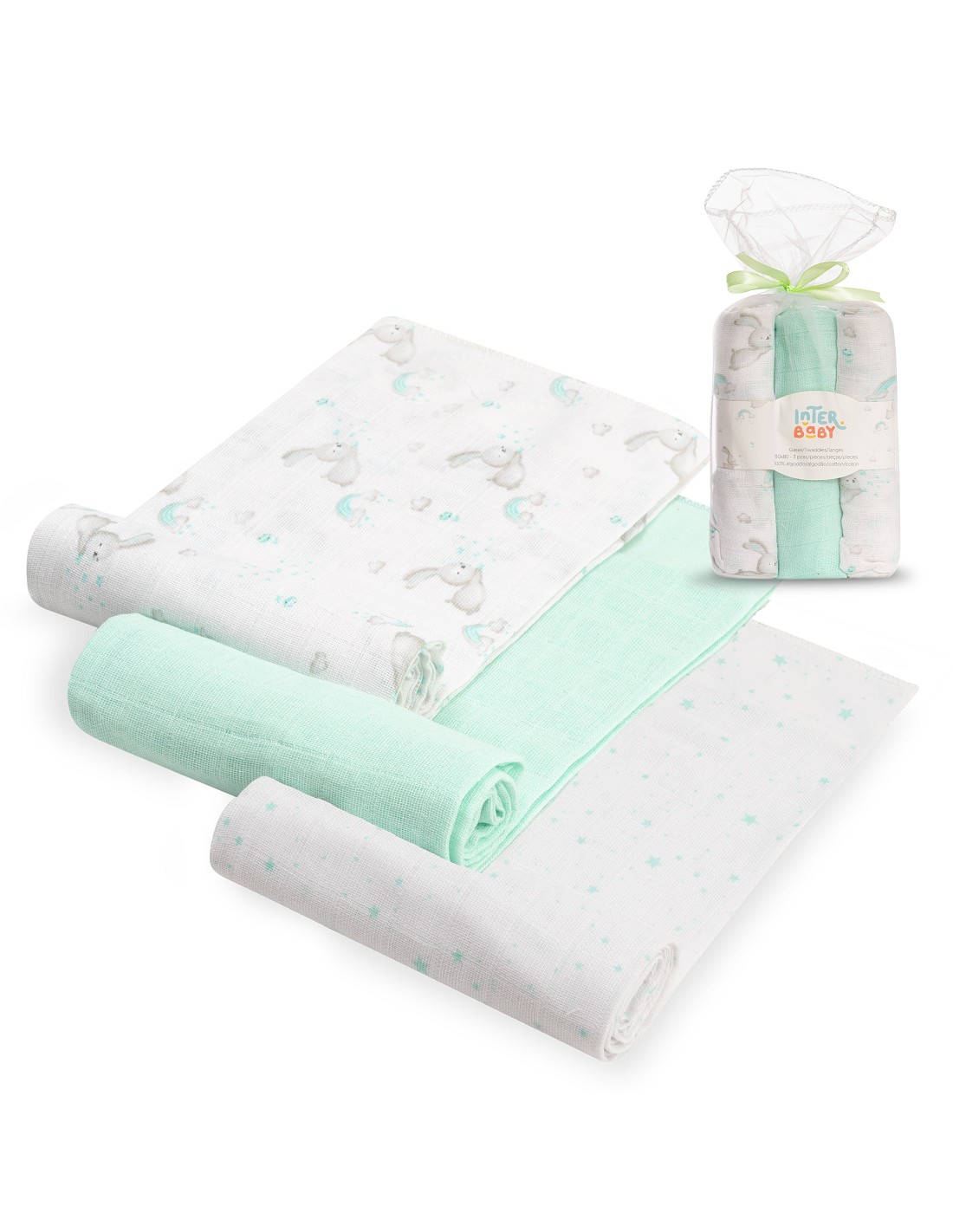 Gasas 80X80 Pack3 Modelo Conejitos Estrellas Verde