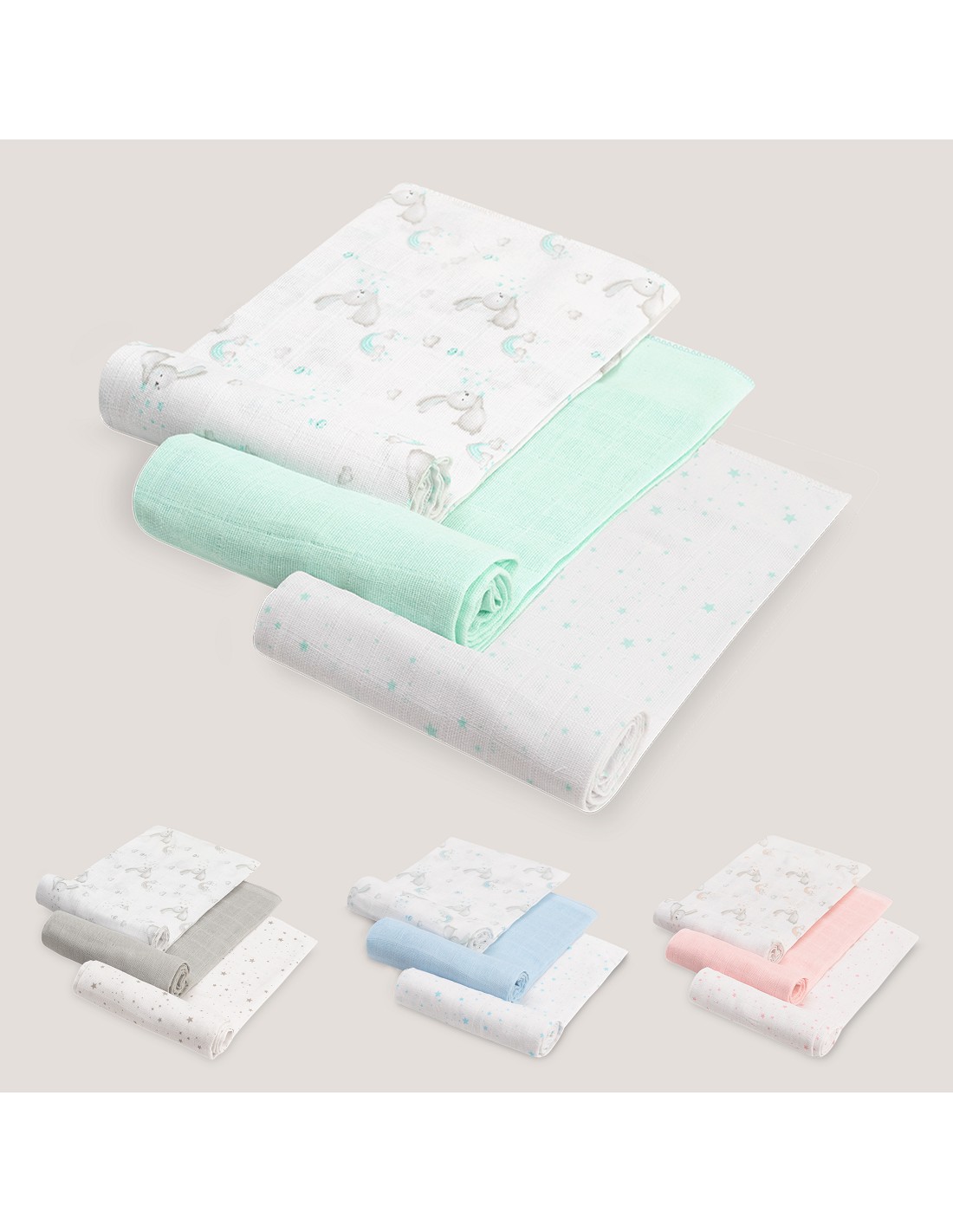 PACK DE 3 .Gasa fabricada en algodónl, tacto extrasuave, transpirable para el confort de tu bebe en verano, muy útil tanto para dar el pecho, como para el carrito de paseo y acomodarle por la noche.