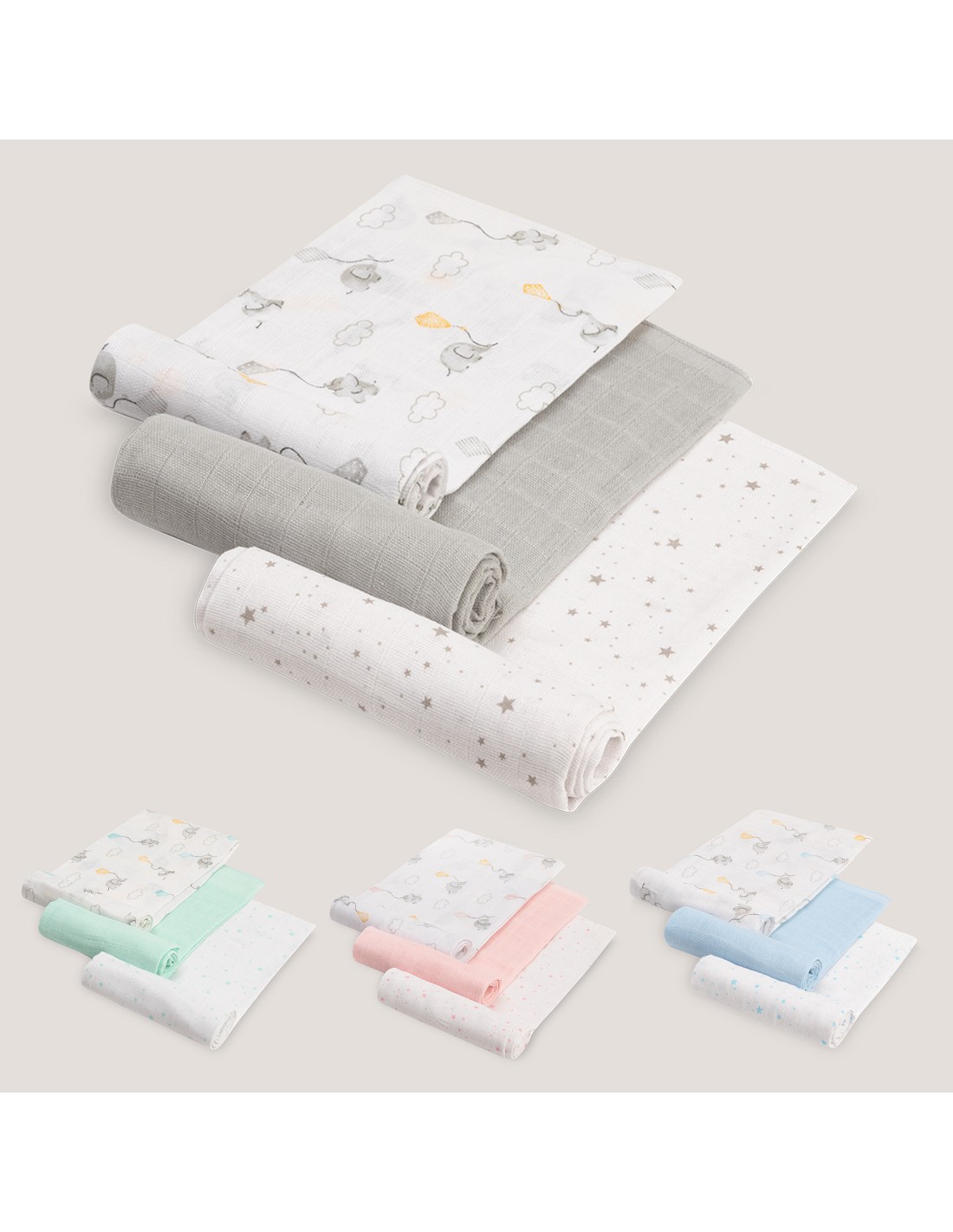 PACK DE 3 .Gasa fabricada en algodónl, tacto extrasuave, transpirable para el confort de tu bebe en verano, muy útil tanto para dar el pecho, como para el carrito de paseo y acomodarle por la noche.