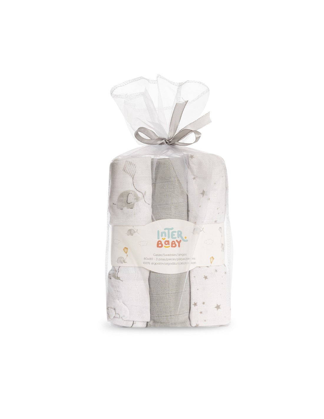 Gasas 80X80 Pack3 Modelo Elefantes Estrellas Gris