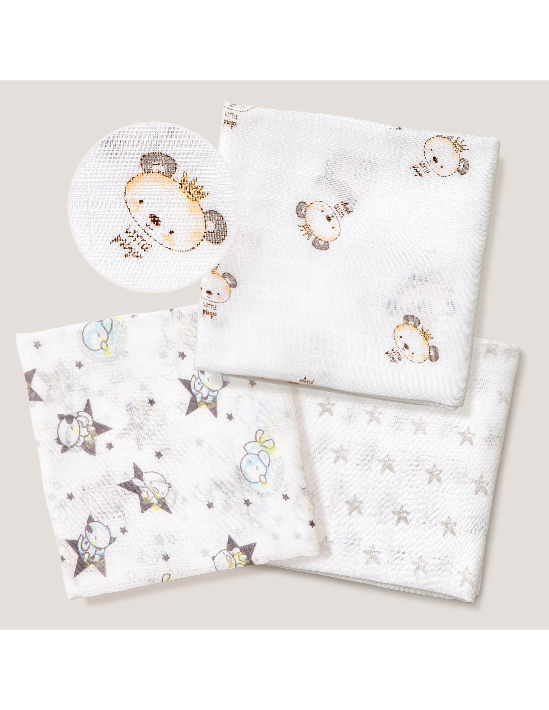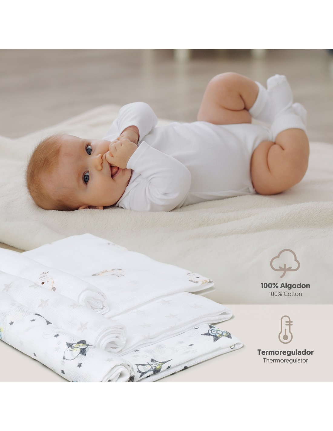 PACK DE 3 .Gasa fabricada en algodón, tacto extrasuave, transpirable para el confort de tu bebe en verano, muy útil tanto para dar el pecho, como para el carrito de paseo y acomodarle por la noche.