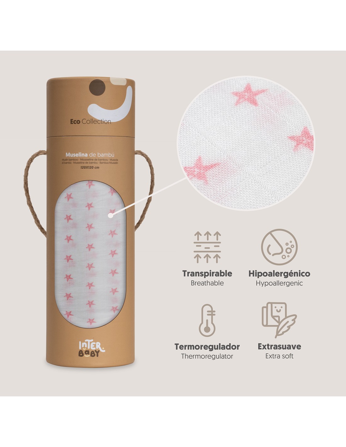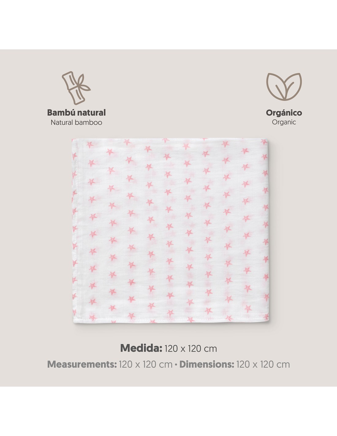 Muselina 1. 20 x 1. 20 Mod Star Bco/Rosa