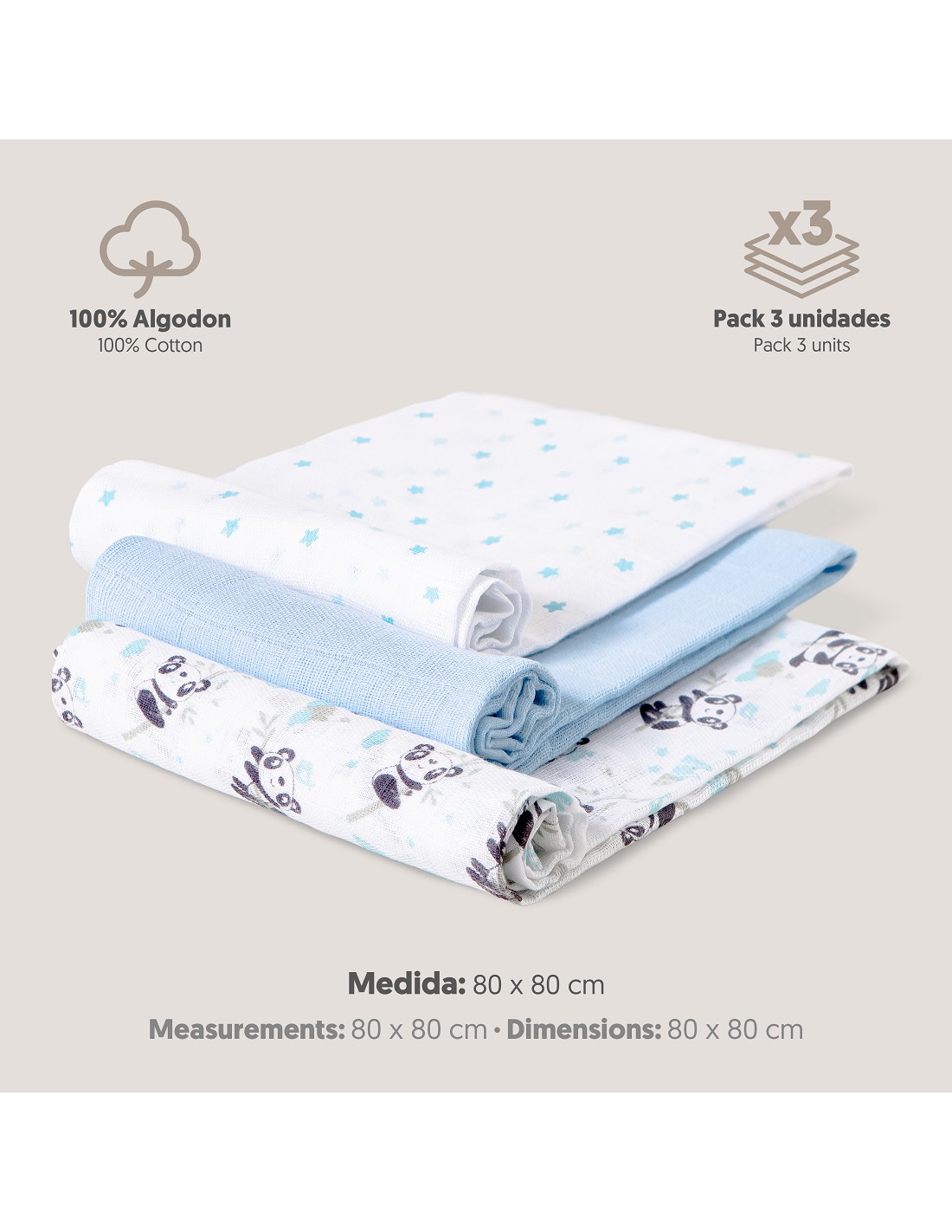 Gasas 80X80 Mod Panda Pack 3 Azul