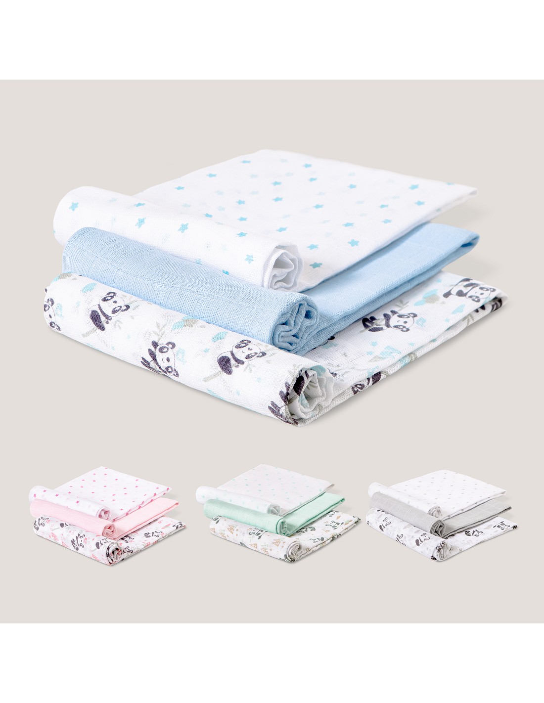 PACK DE 3 .Gasa fabricada en algodónl, tacto extrasuave, transpirable para el confort de tu bebe en verano, muy útil tanto para dar el pecho, como para el carrito de paseo y acomodarle por la noche.