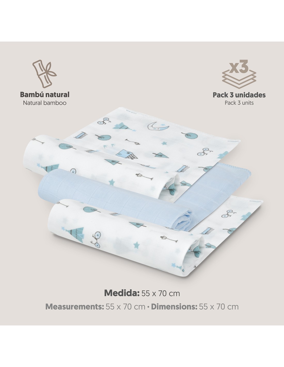Gasas Bambu 55X70 Mod Moon Pack 3 Azul