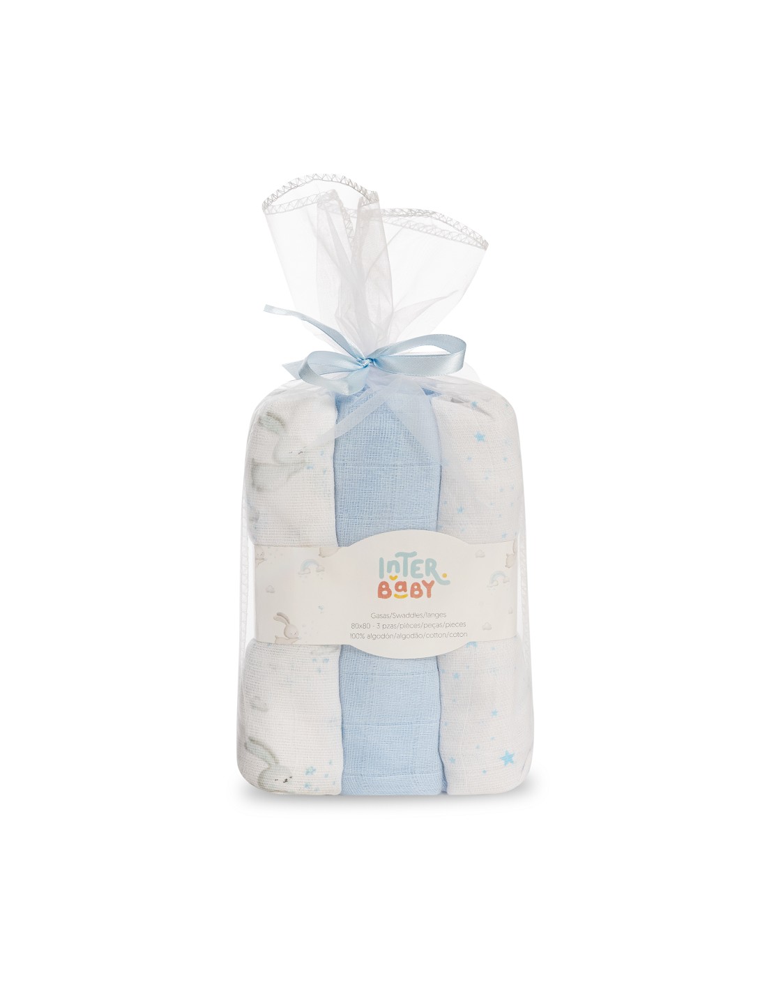 Gasas 80X80 Pack3 Modelo Conejitos Estrellas Azul
