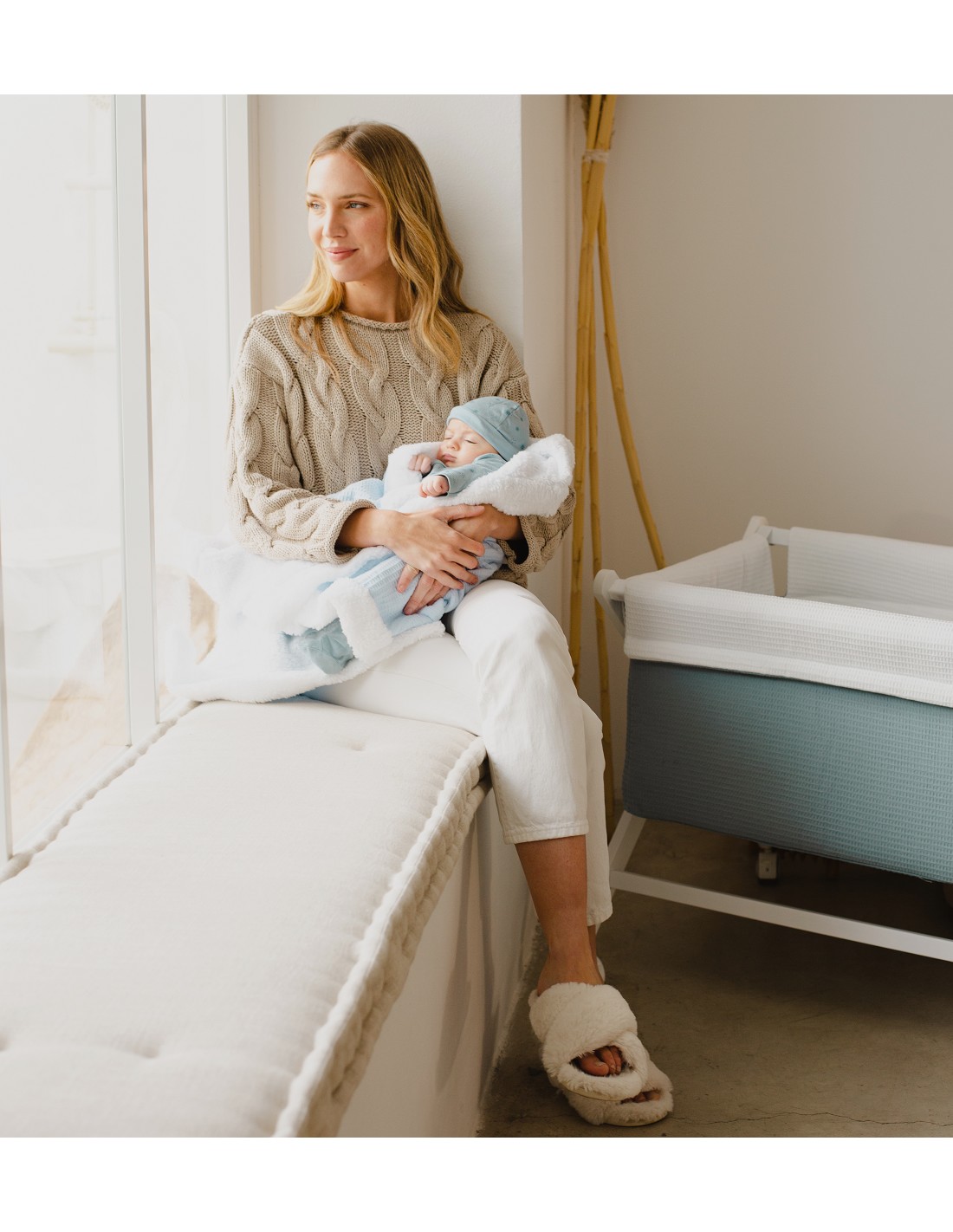 Manta Nido Abeja+Borreguillo Beig