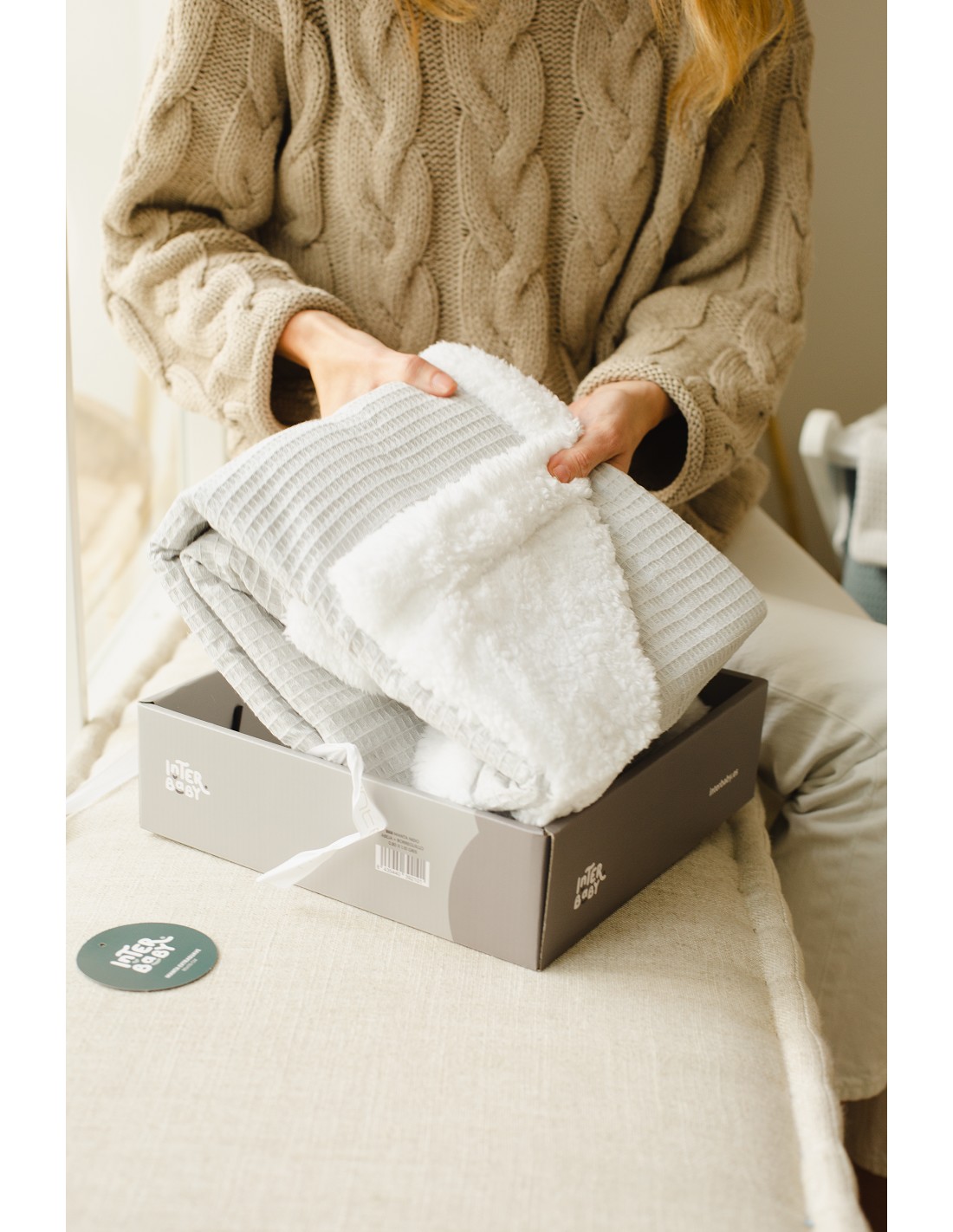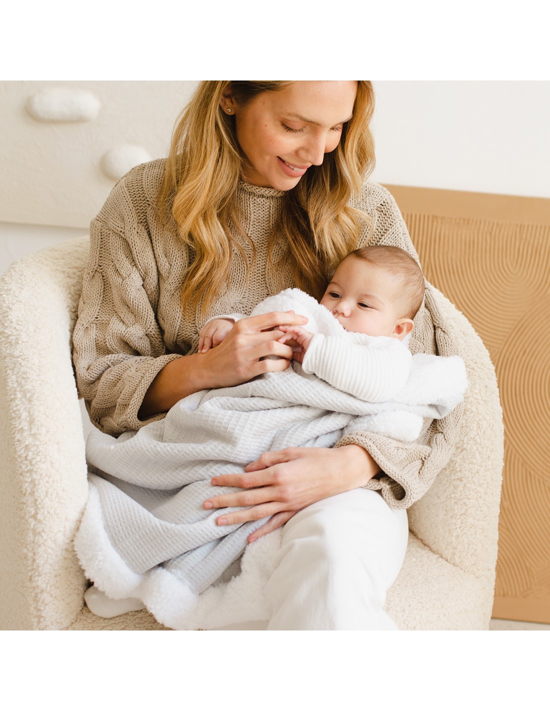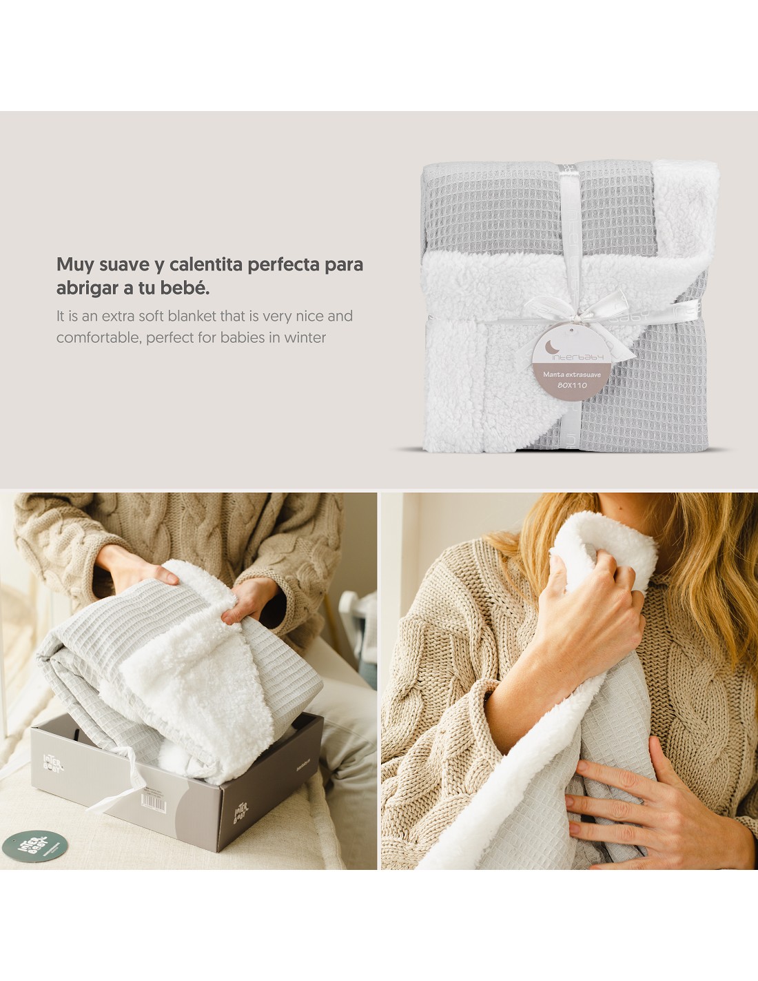 Manta Nido Abeja + Borreguillo Gris