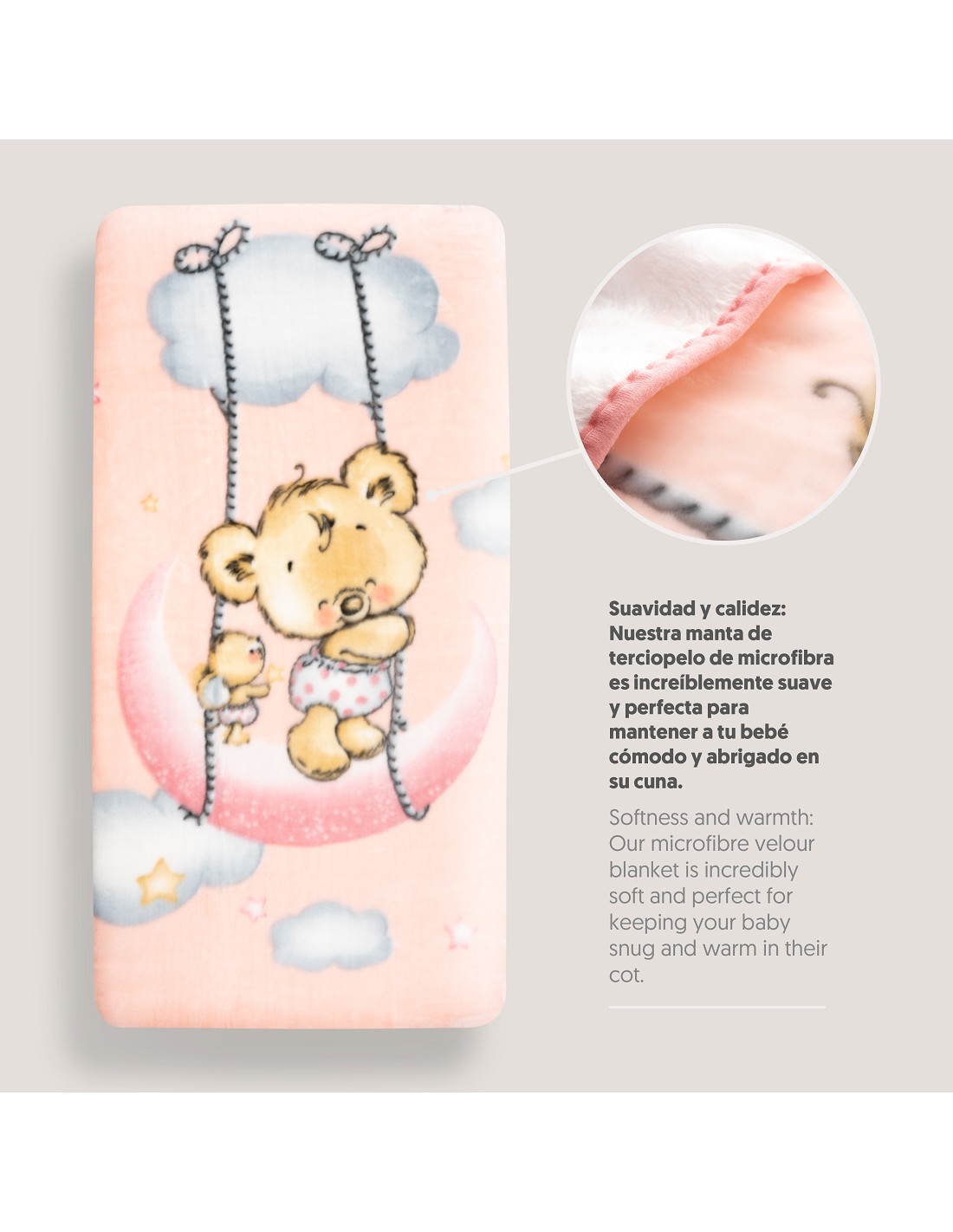 Manta de terciopelo para cuna. Fabricado en microfibra de alta calidad para dotar a tu bebé de una sensación térmica muy agradable y suave al tacto.