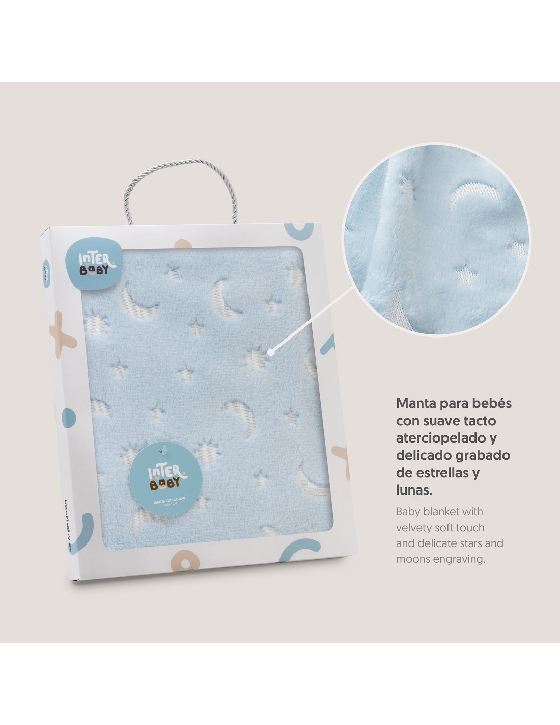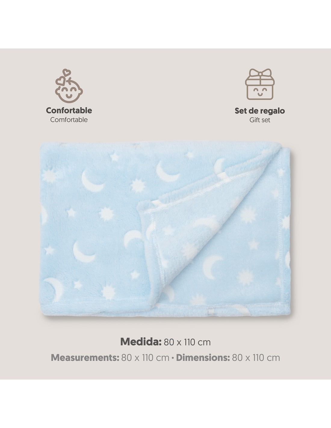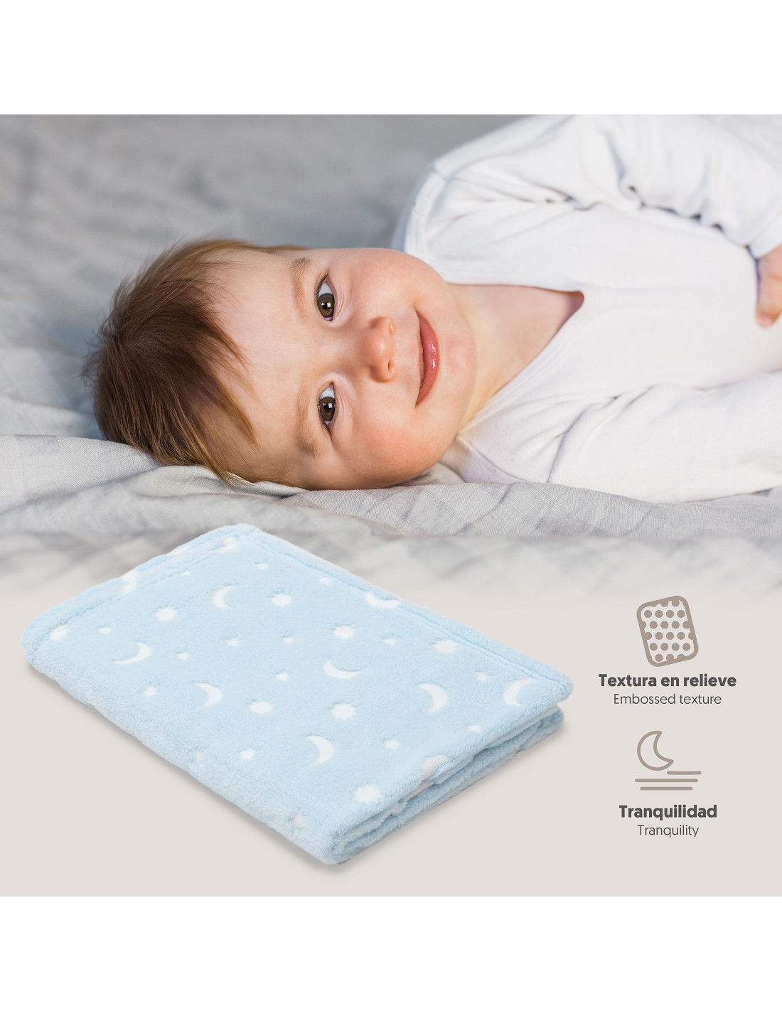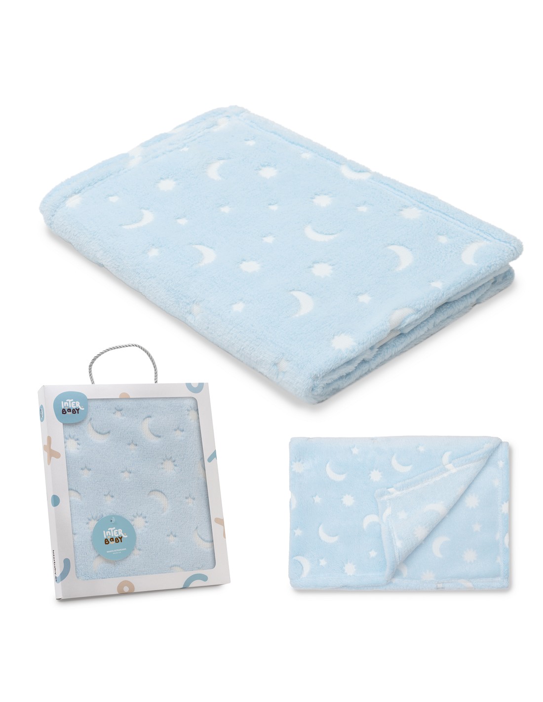 Manta Grabada Luna Estrellas Azul