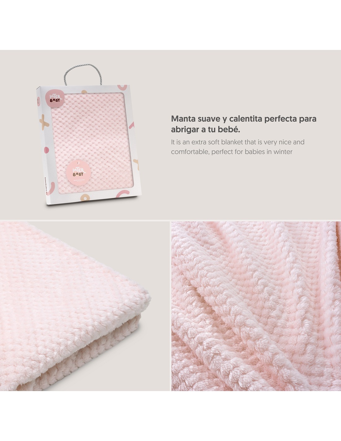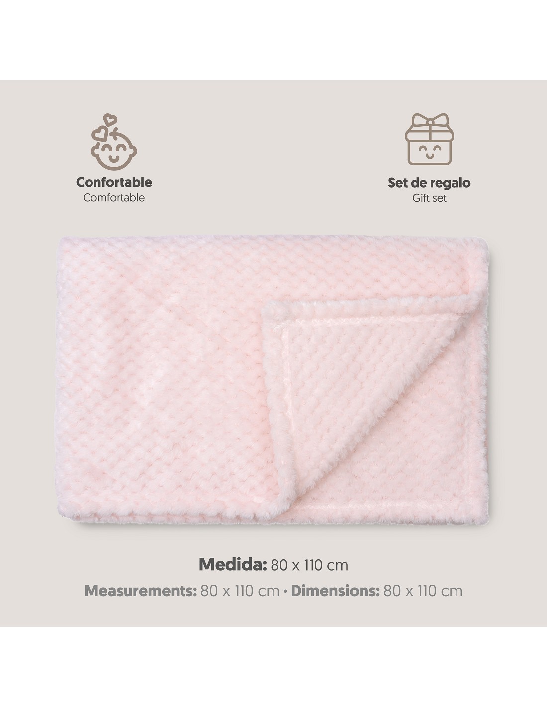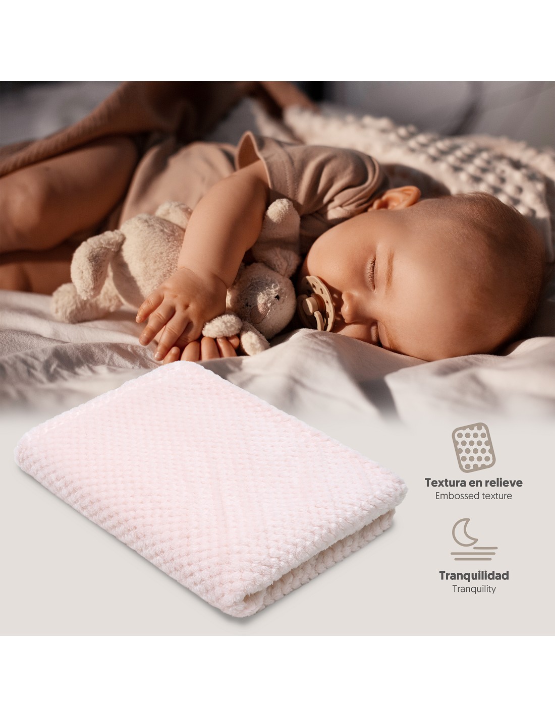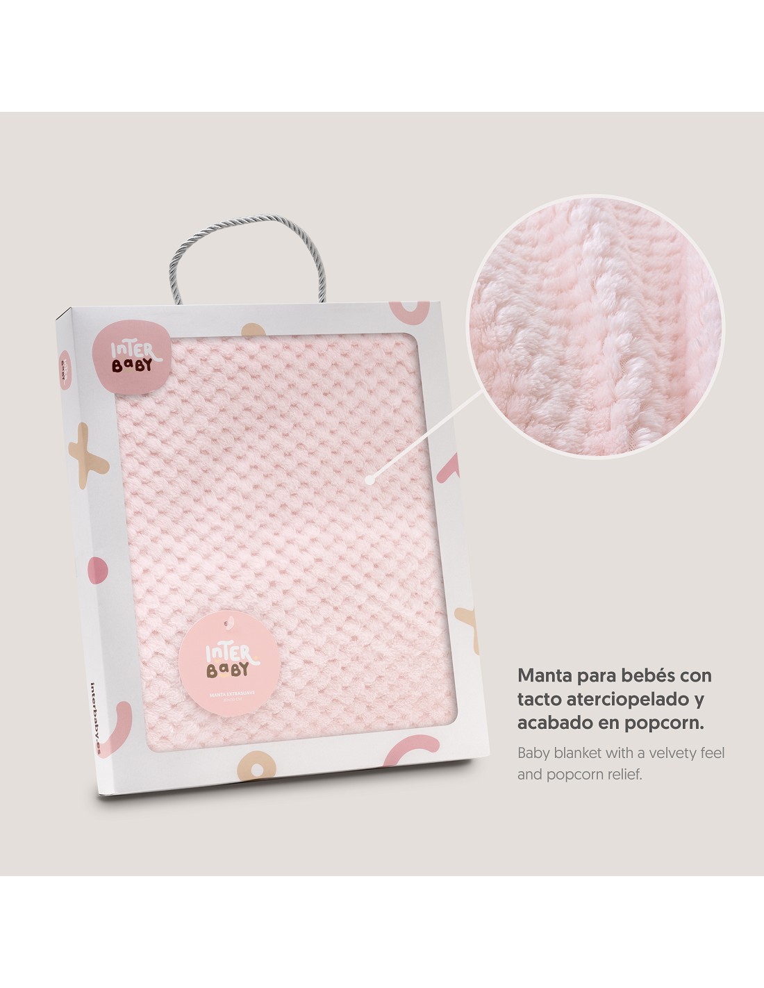 Manta para bebés con tacto aterciopelado y acabado en popcorn. Muy suave y calentita ideal para abrigar a tu bebé.