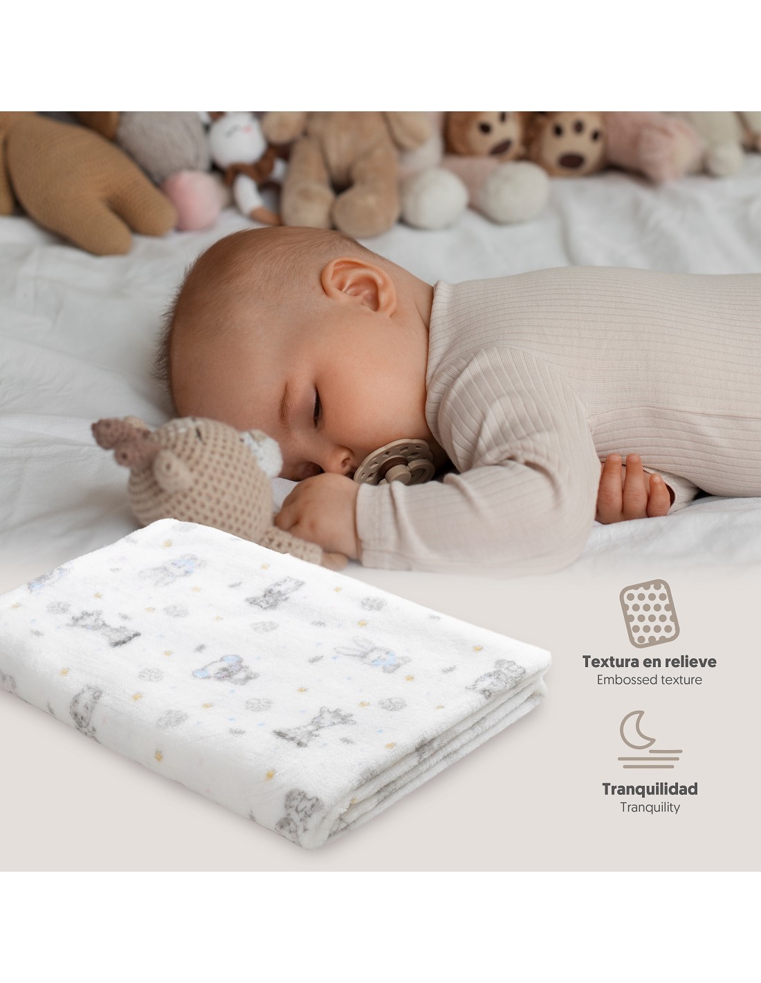 Manta para bebé de tejido coralina estamapada. Muy suave y calentita perfecta para abrigar a tu bebé.