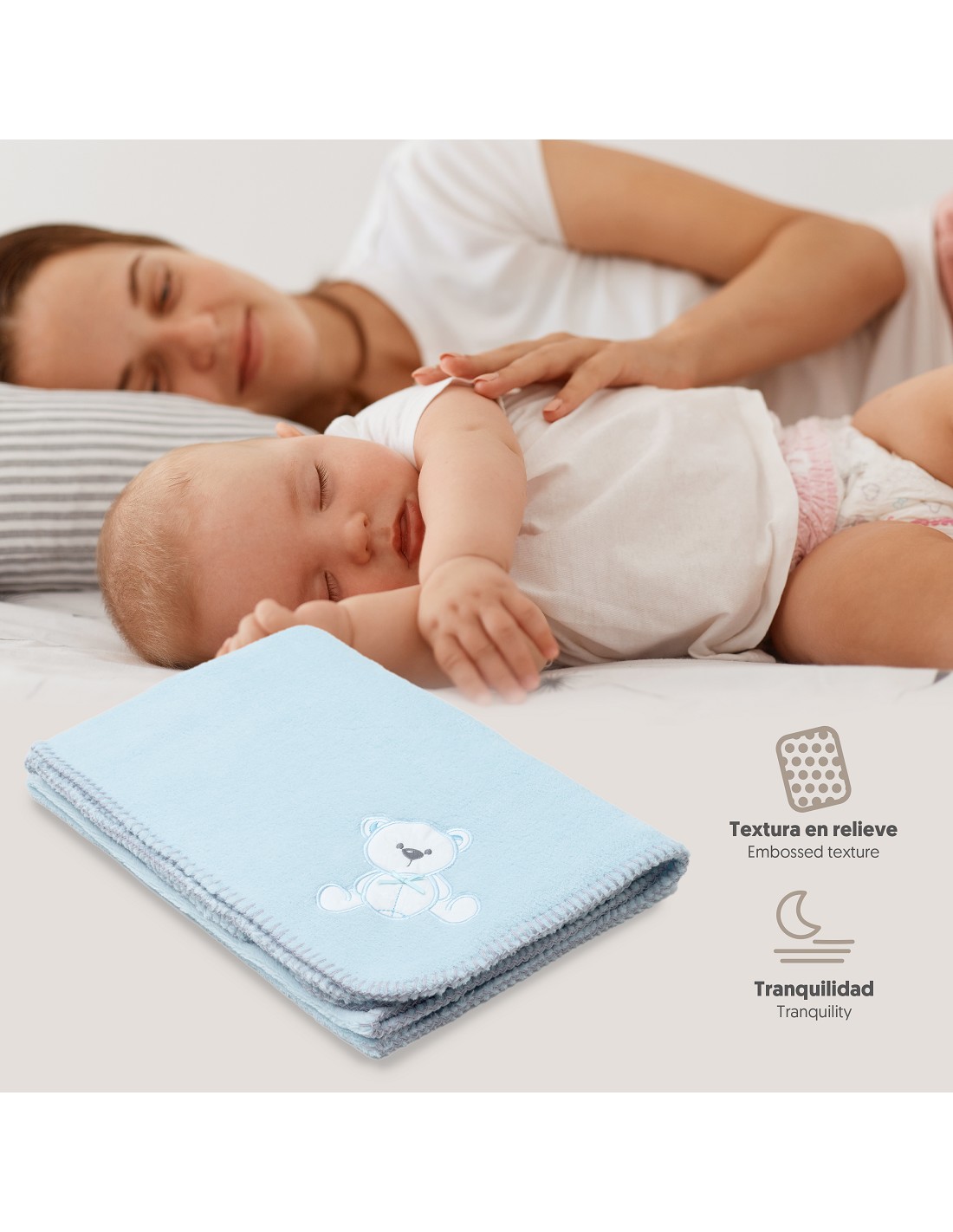 Manta para bebés de tejido coralina bordada. Muy suave y calentita perfecta para abrigar a tu bebé.