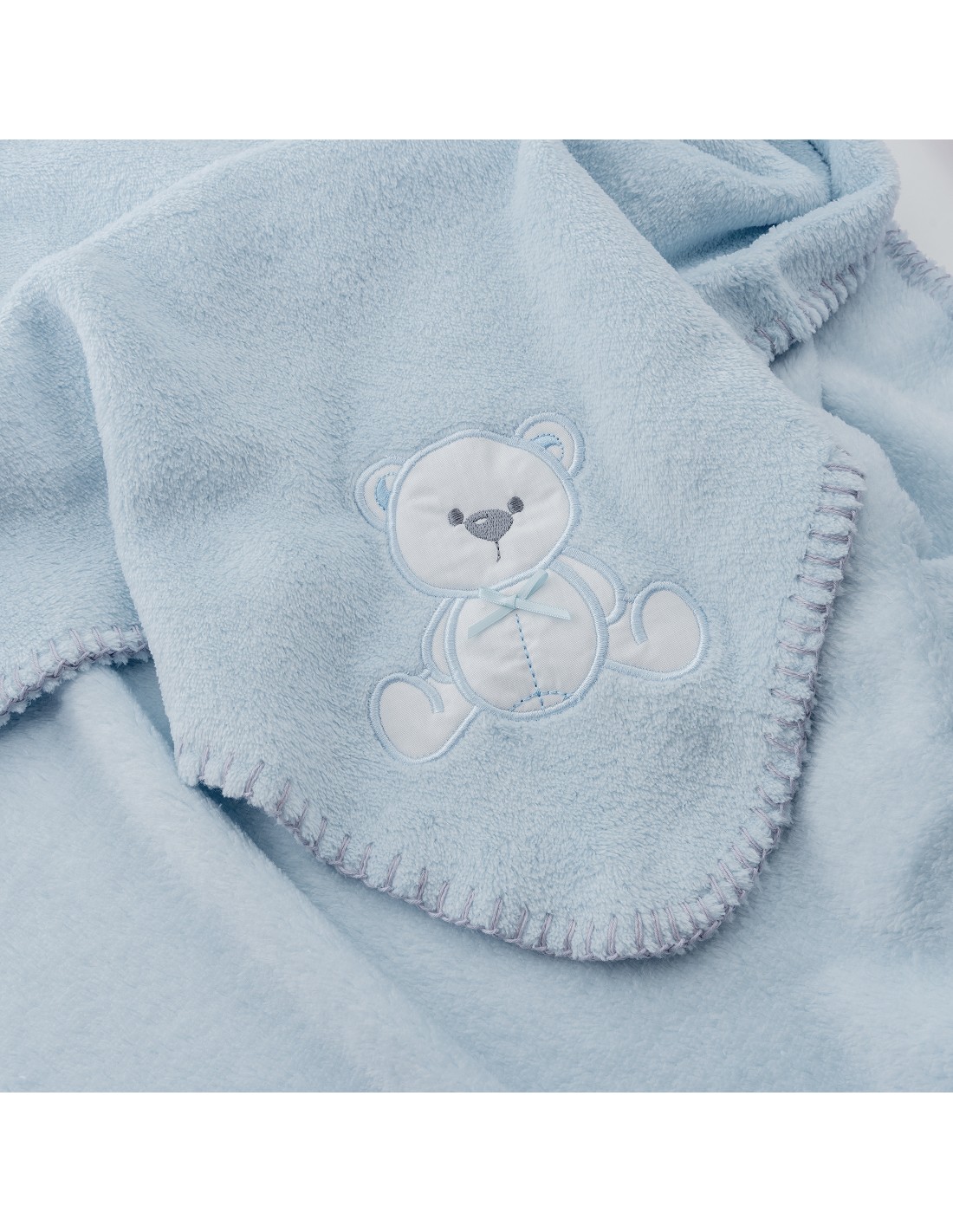 Manta Bordada Oso Lazo Azul