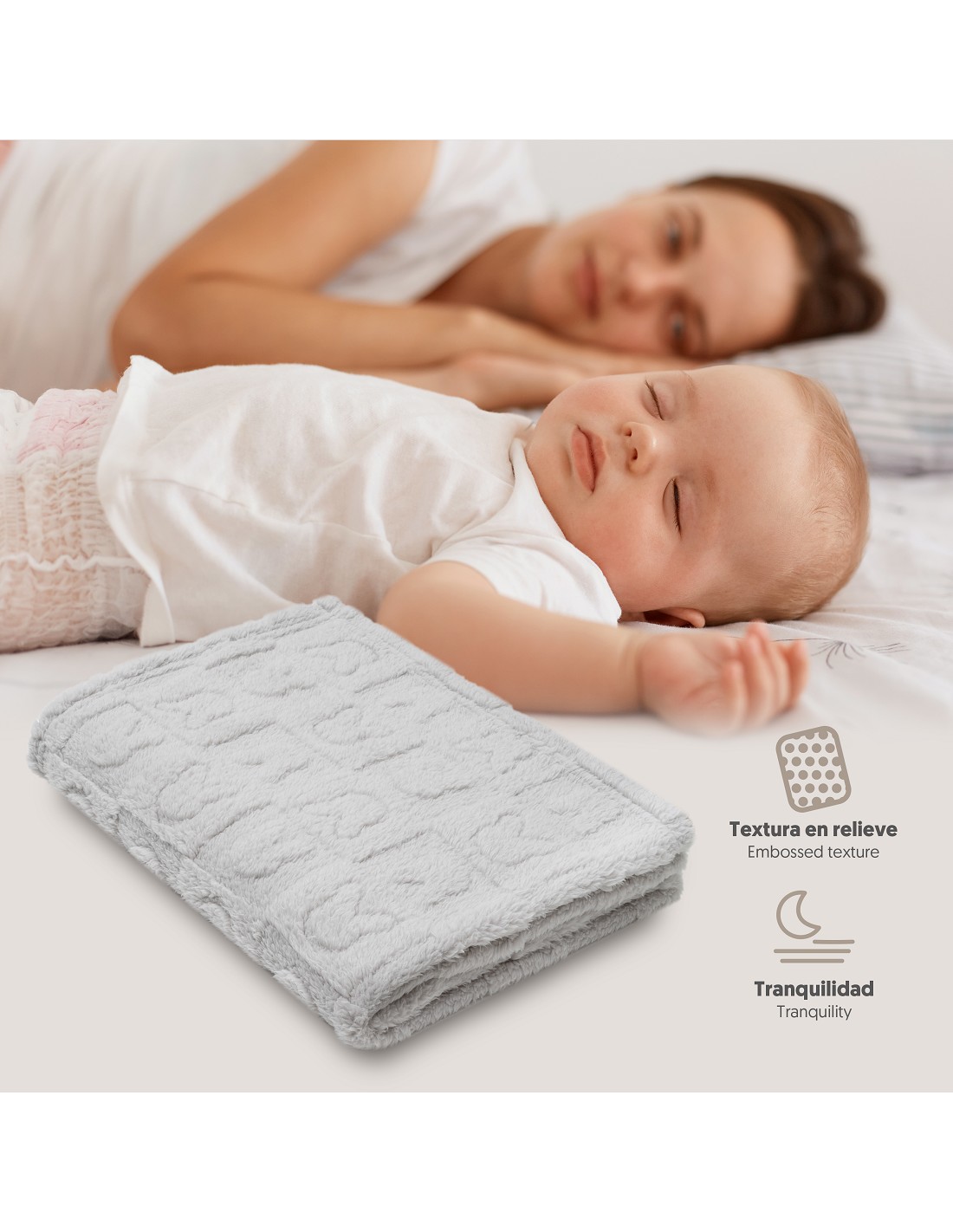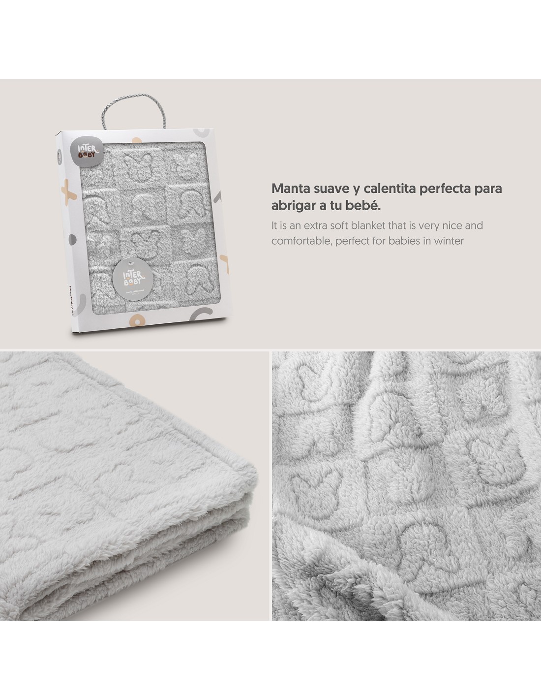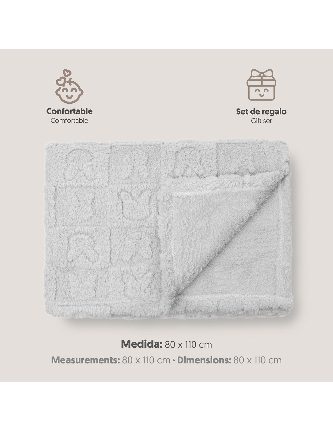 Manta para bebés con tacto aterciopelado y adorable grabado de conejitos. Muy suave y calentita. ideal para mantener a tu bebé abrigado,