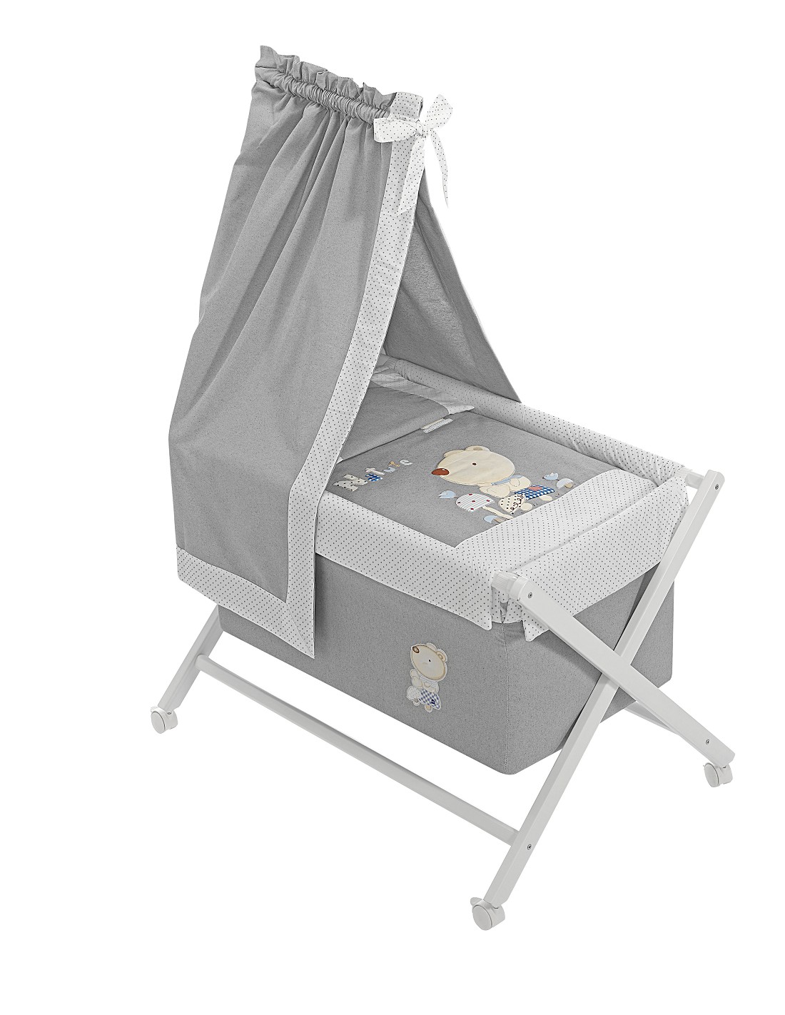 Minicuna Bco+Textil+Dosel  Mod Nature Azul