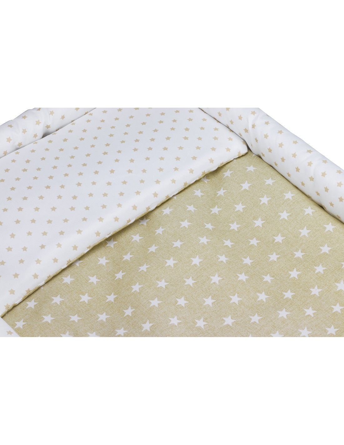 Minicuna de madera de haya con forma de tijera plegable. Incluye Textil 100 % algodón ( Vestidura + edredon + almohada) + colchón + somier + 4 patas con freno para total seguridad de tu bebé. Fácil montaje y extraordinaria movilidad por toda tu casa ya que podrás atravesar las puertas de las distintas estancias de tu casa sin problemas.