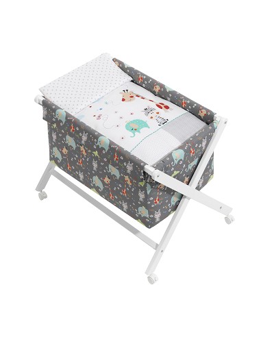 Minicuna +Textil Mad Bca Mod  Jungla Gris