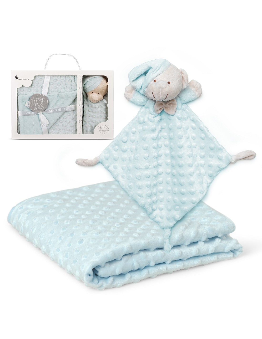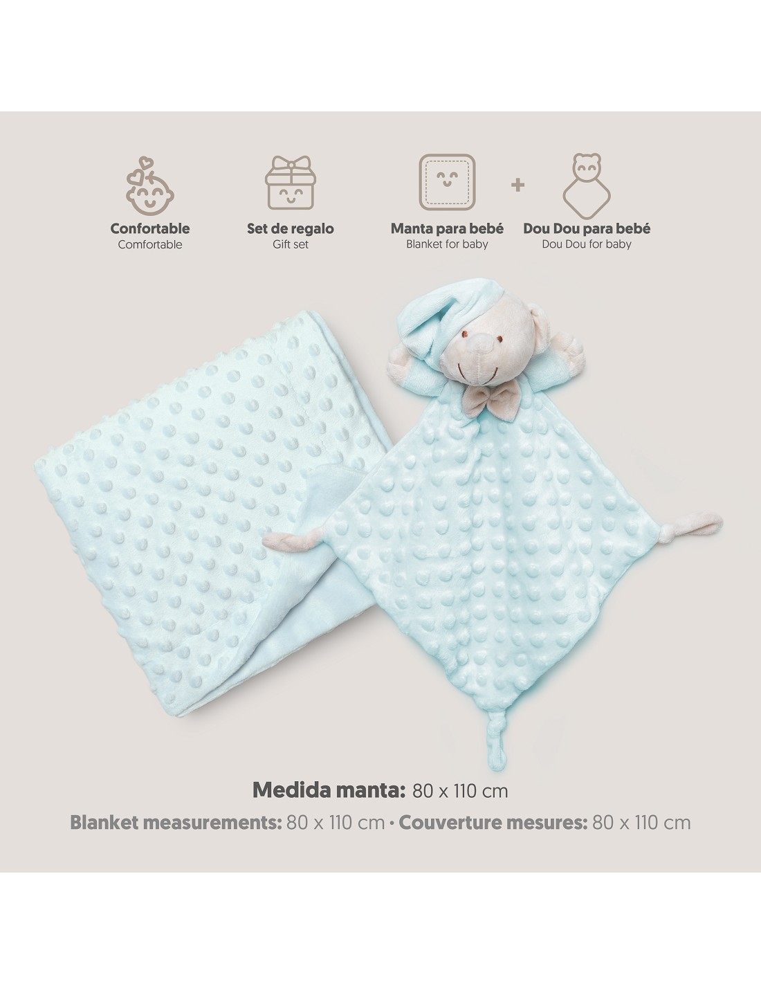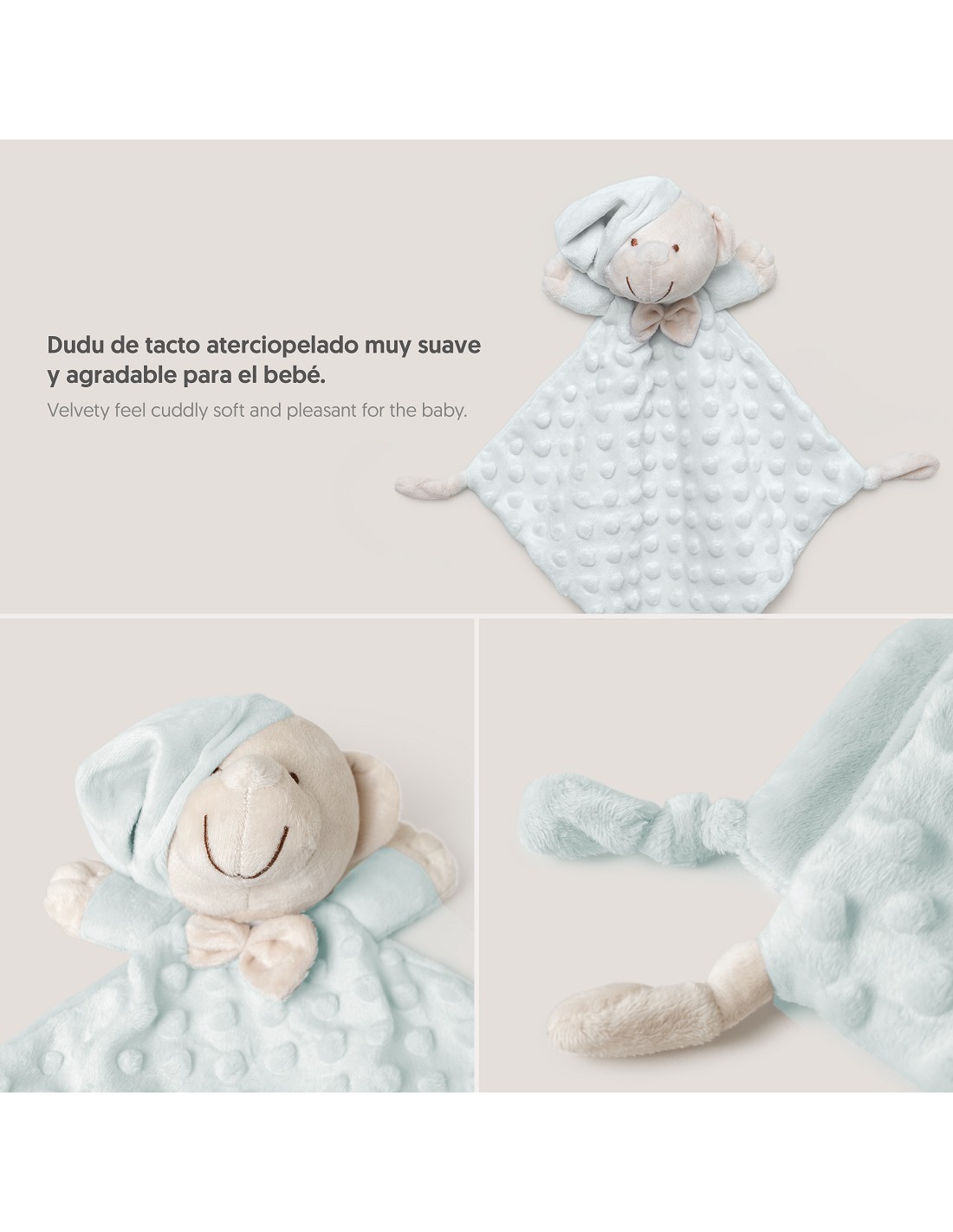 Set Manta de terciopelo para cuna acabado en borreguillo. Fabricado en microfibra de alta calidad para dotar a tu bebé de una sensación térmica muy agradable y suave al tacto. Bonito Dudu a conjunto para que acompañe a tu bebé.
