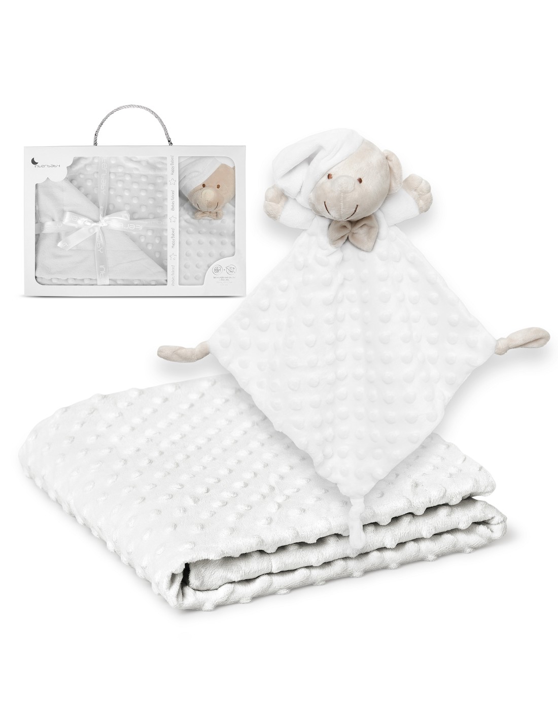 Set Manta de terciopelo para cuna acabado en borreguillo. Fabricado en microfibra de alta calidad para dotar a tu bebé de una sensación térmica muy agradable y suave al tacto. Bonito Dudu a conjunto para que acompañe a tu bebé.