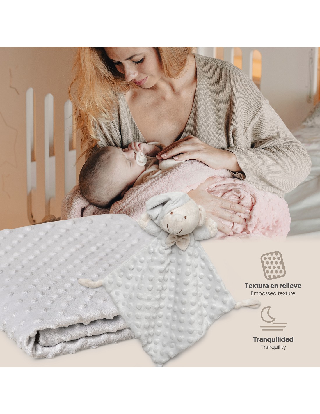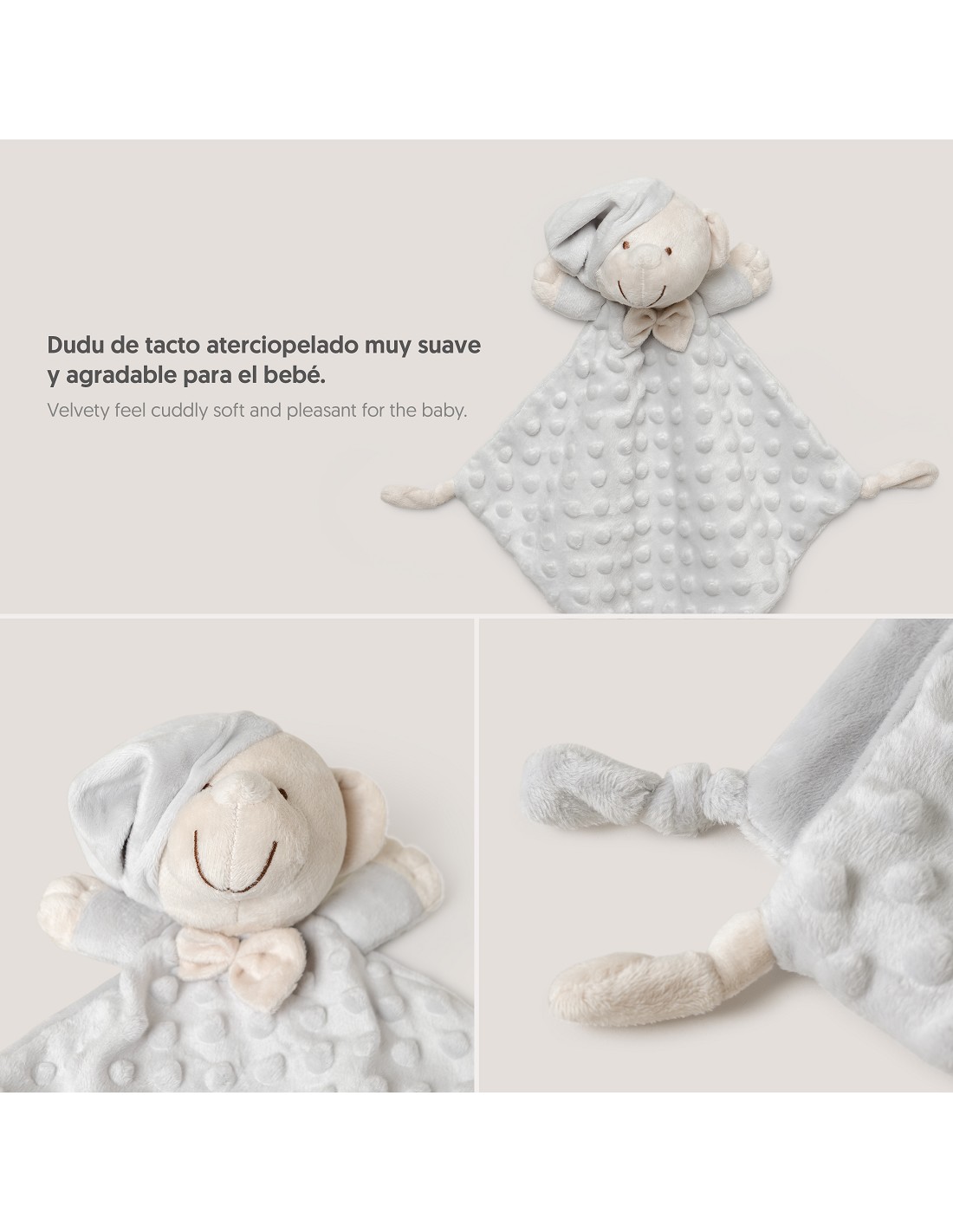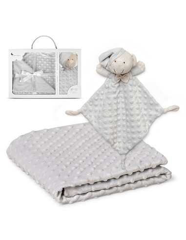 Set Manta de terciopelo para cuna acabado en borreguillo. Fabricado en microfibra de alta calidad para dotar a tu bebé de una sensación térmica muy agradable y suave al tacto. Bonito Dudu a conjunto para que acompañe a tu bebé.