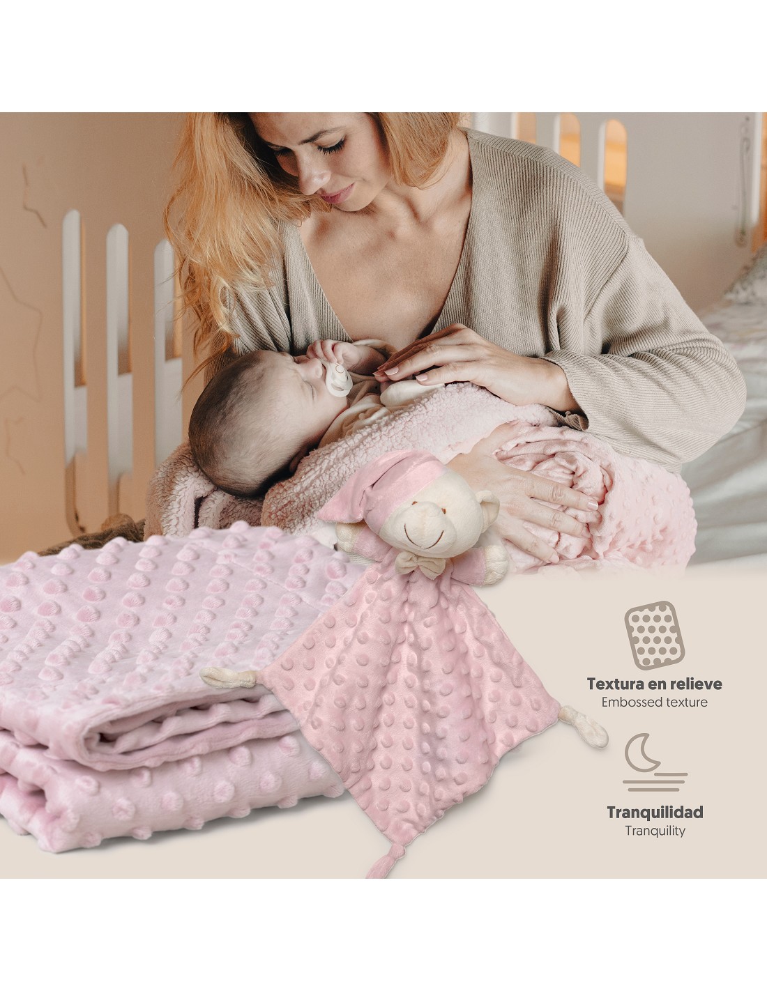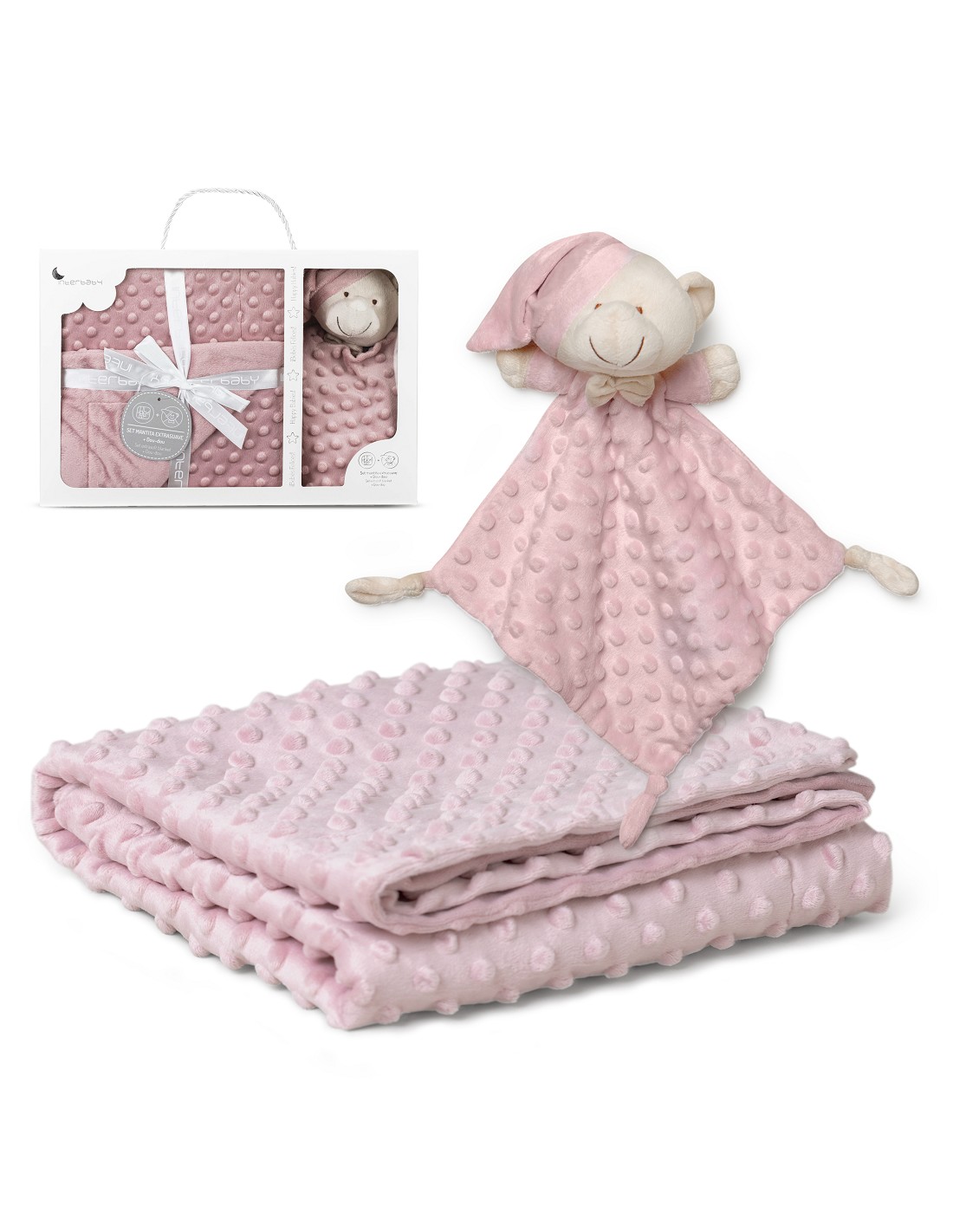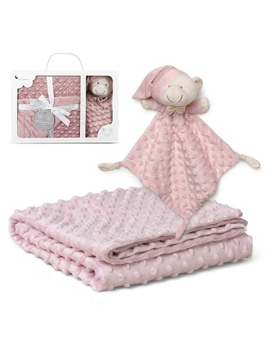 Set Manta de terciopelo para cuna acabado en borreguillo. Fabricado en microfibra de alta calidad para dotar a tu bebé de una sensación térmica muy agradable y suave al tacto. Bonito Dudu a conjunto para que acompañe a tu bebé.