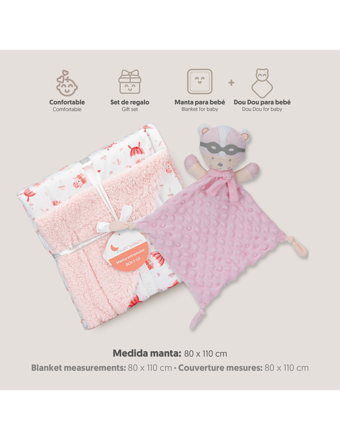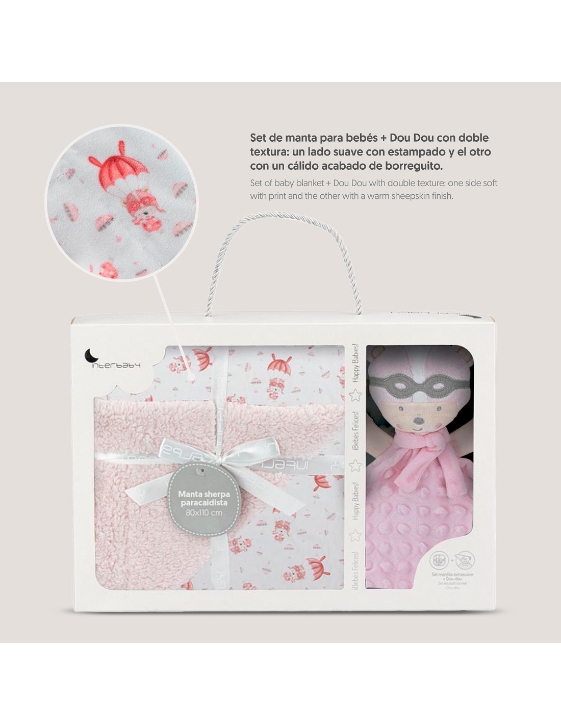 Manta Borreguillo Mod Paracaidista+Dou-Dou Mod Paracaidista Rosa