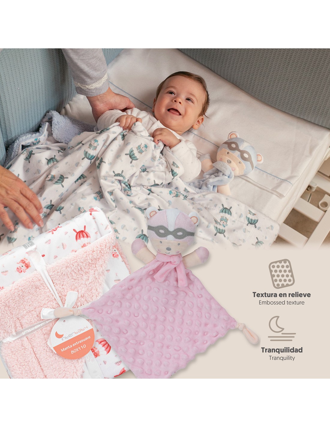 Set Manta de terciopelo para cuna acabado en burbuja. Fabricado en microfibra de alta calidad para dotar a tu bebé de una sensación térmica muy agradable y suave al tacto. Incluye dudu a conjunto para que acompañe a tu bebé