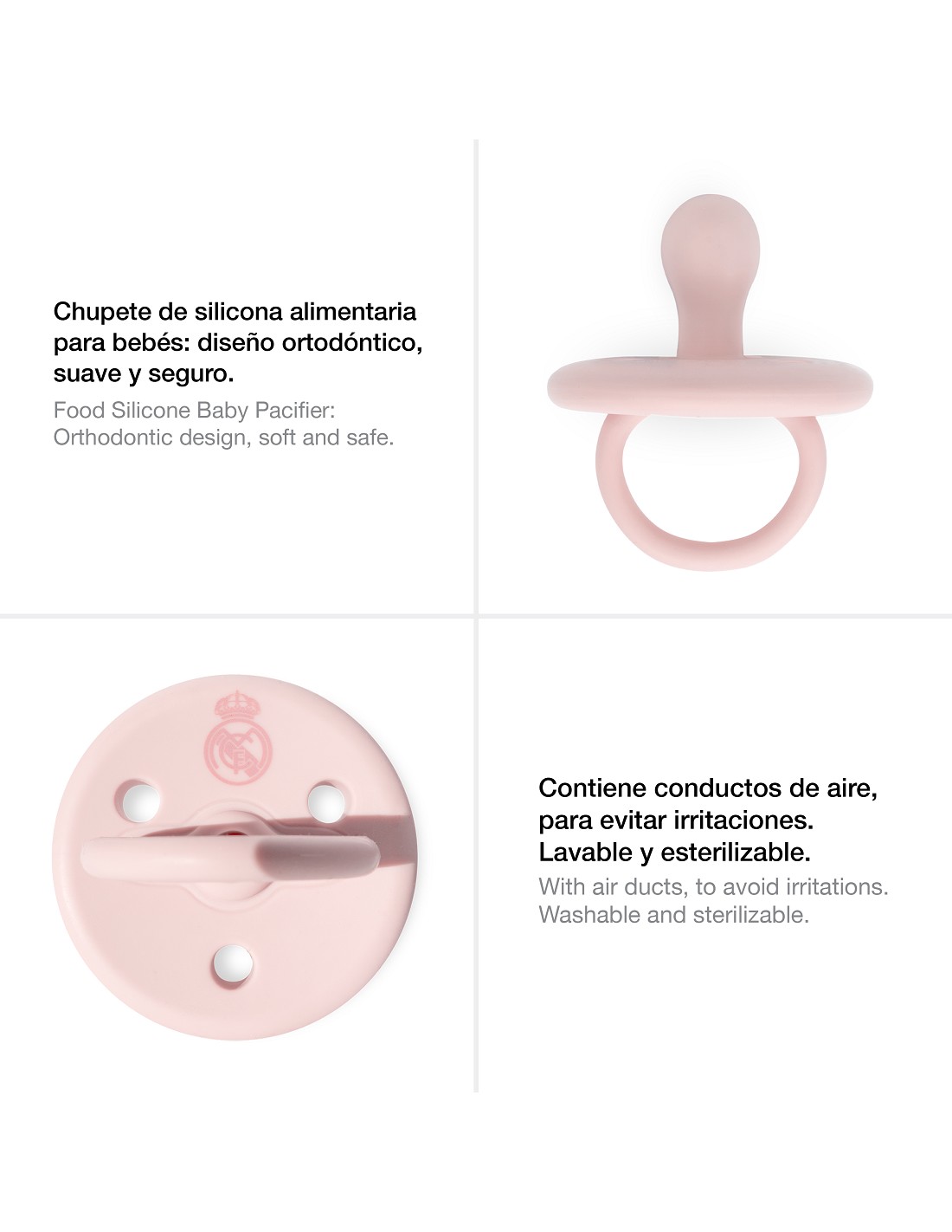 Chupete fabricado con silicona alimentaria apto para bebés, suave y seguro. Incluye conductos de aire, evita irrataciones. Lavable y esterilizable para tranquilidad y comodidad de los papás. Apto para lavavajillas. Libre de BPA, PVC y ftalatos.