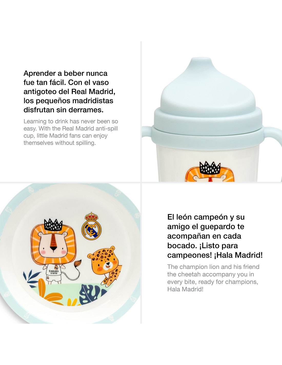 Vajiila de aprendizaje apata para microondas y lavavajillas. Pilipropileno libre de Bisfenol . Apta para temperaturas desde los -20ºC a los 120ºC. Contiene Plato llano, bol, cuchara, tenedor y vaso antigoteo de aprendizaje. Apto para mayores de 6 meses de edad.
