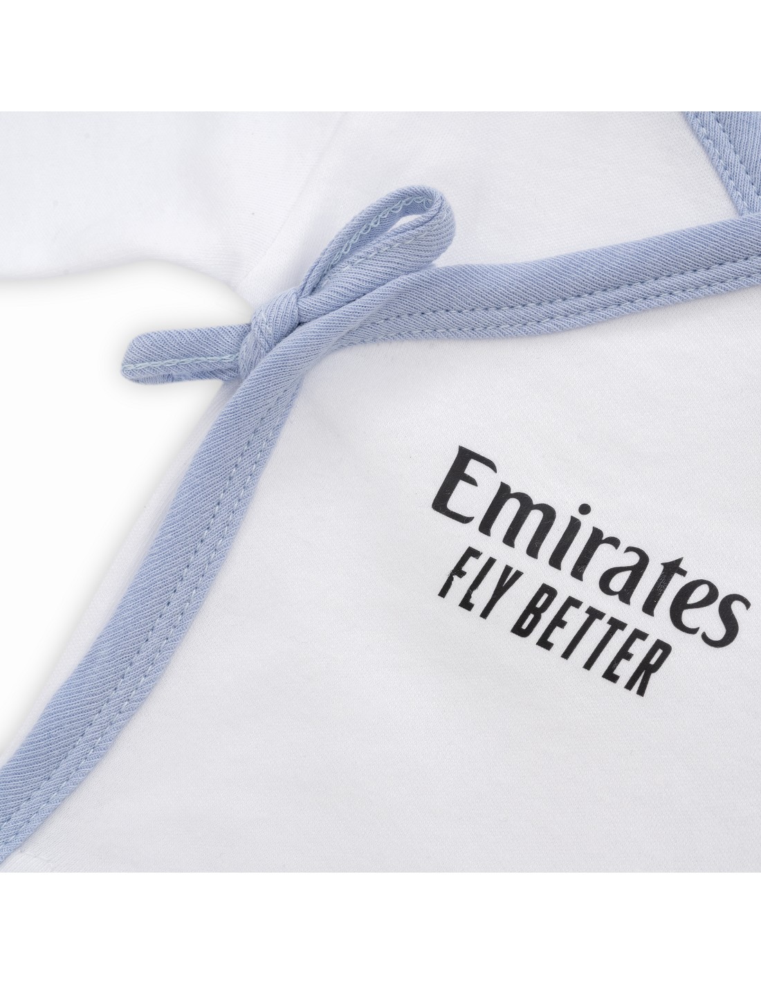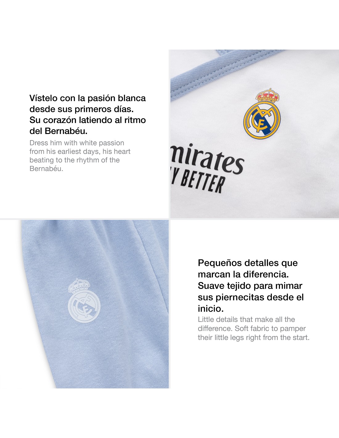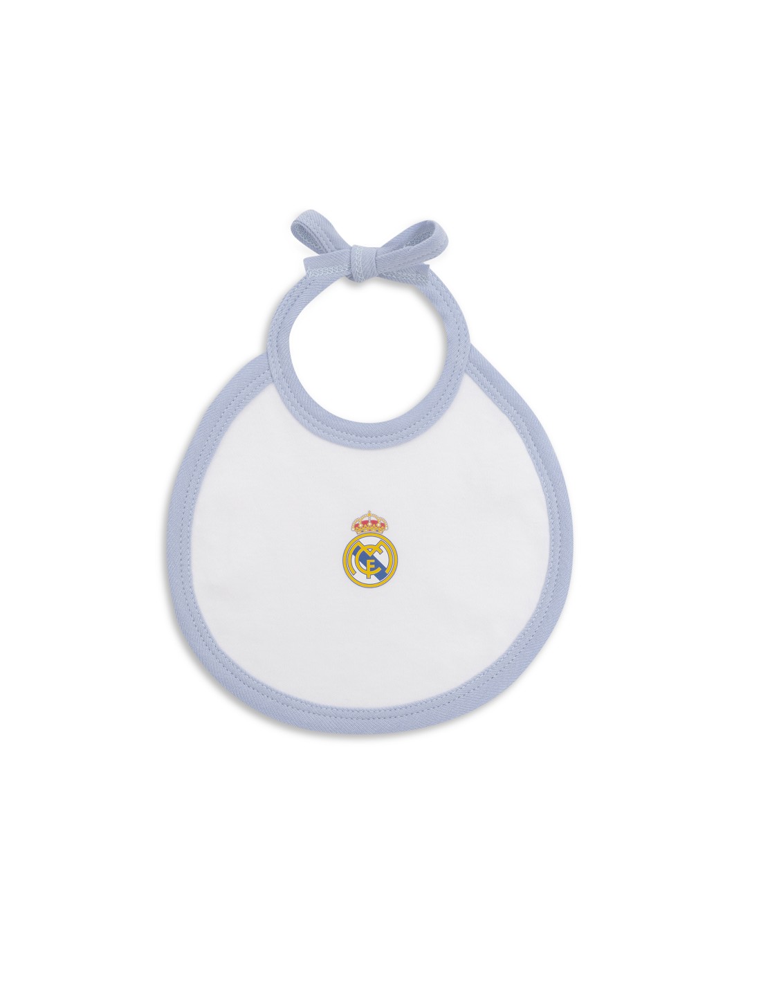 SET primera puesta Real Madrid. Compuesto por gorro, camisa, polaina, manopla y babero.Edad 0-6 meses.