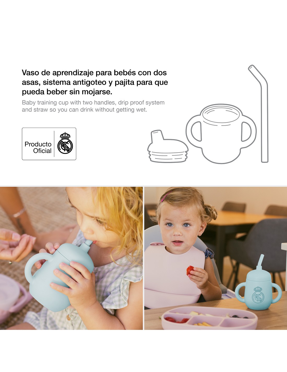 Vaso antigoteo que incuye pajita para ayudar a tu bebé a una mejor absorción de liquidos y evitar derrames. Ayuda a tu bebé a mantener el vaso en sus manos facilitándole la ingesta de liquidos. Pajita y tapita desmontables. Libre de posibles infecciones al estar fabricado en silicona libre de BPA, PVC, Vinilo, Plomo y ftalatos. Apto para lavavajillas.
