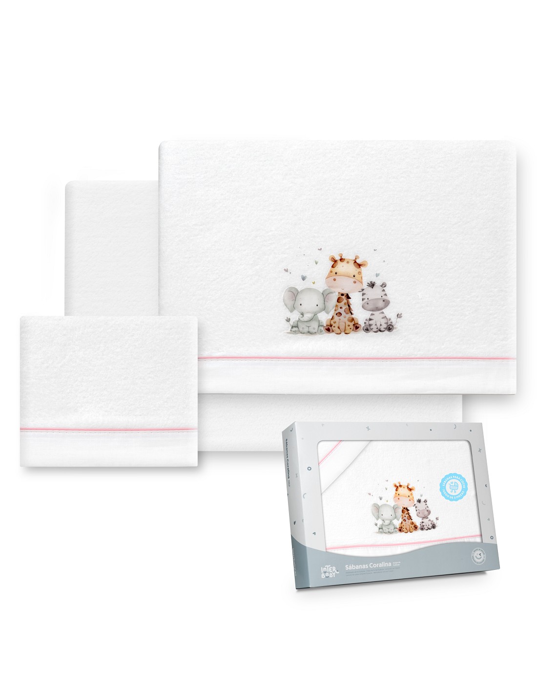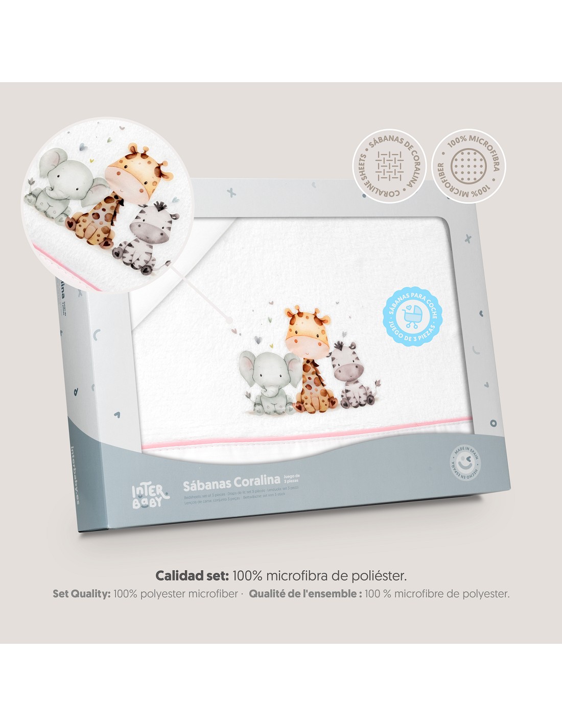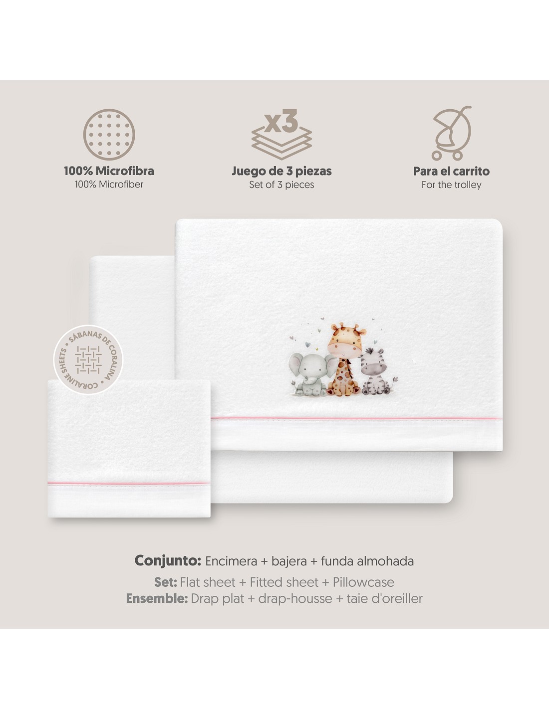 Triptico Coche Coralina Estampado Jirafa Elefante Bco/Rosa