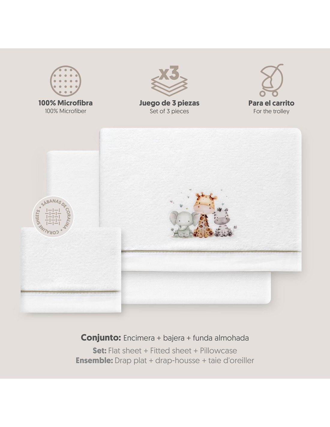 Triptico Coche Coralina Estampado Jirafa Elefante Bco/Verde