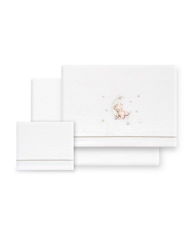 "Compuesto por encimera (72 X 114cm) , bajera (40 X 80 cm) y funda de almohada (40 x 25 cm). 100 % poliester. Lavar en frío.