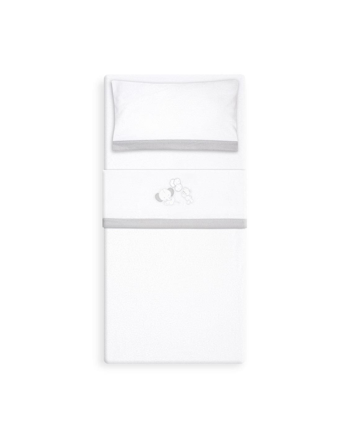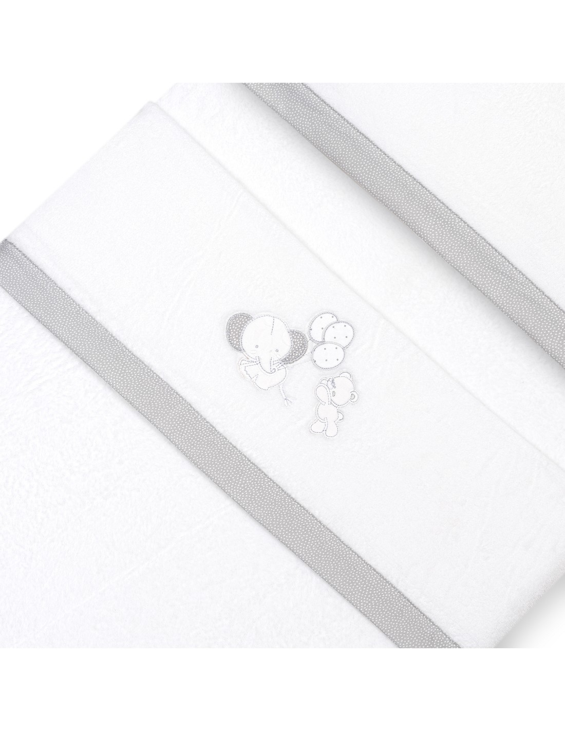 "Compuesto por encimera (72 X 114cm) , bajera (40 X 80 cm) y funda de almohada (40 x 25 cm). 100 % poliester. Lavar en frío.