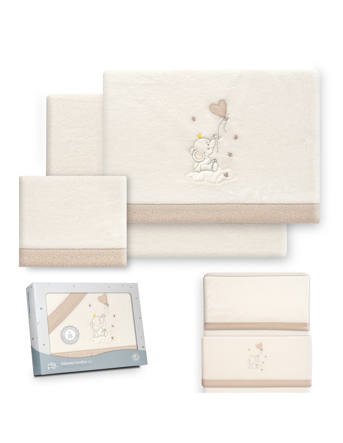 Triptico Minicuna Coralina Elefante Globo Corazon Beig