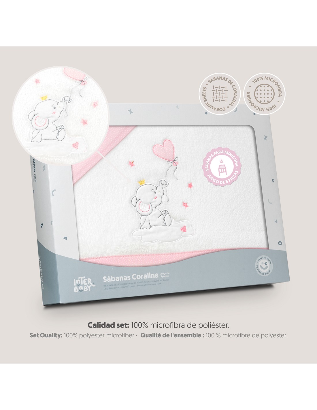 Triptico Minicuna Coralina Elefante Globo Corazon Bco/Rosa