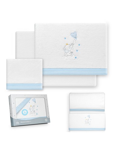 Compuesto por encimera (82 x 114 cm) , bajera (50 x 80 cm) y funda de almohada (50 x 30 cm). 100 % poliester. Lavar en frío.