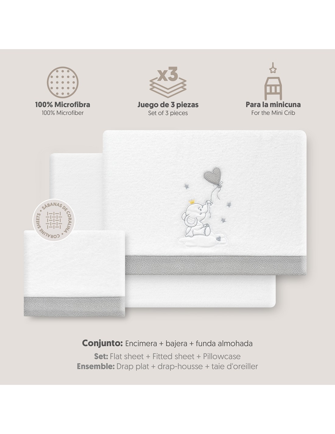 Triptico Minicuna Coralina Elefante Globo Corazon Bco/Gris