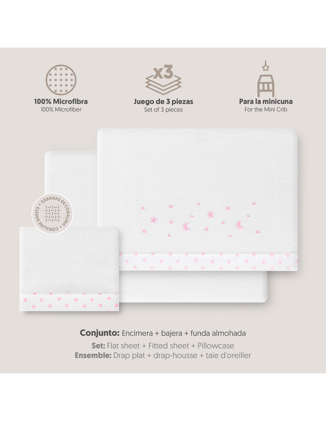 Triptico Minicuna Coralina Estrellas Luna Bco/Rosa