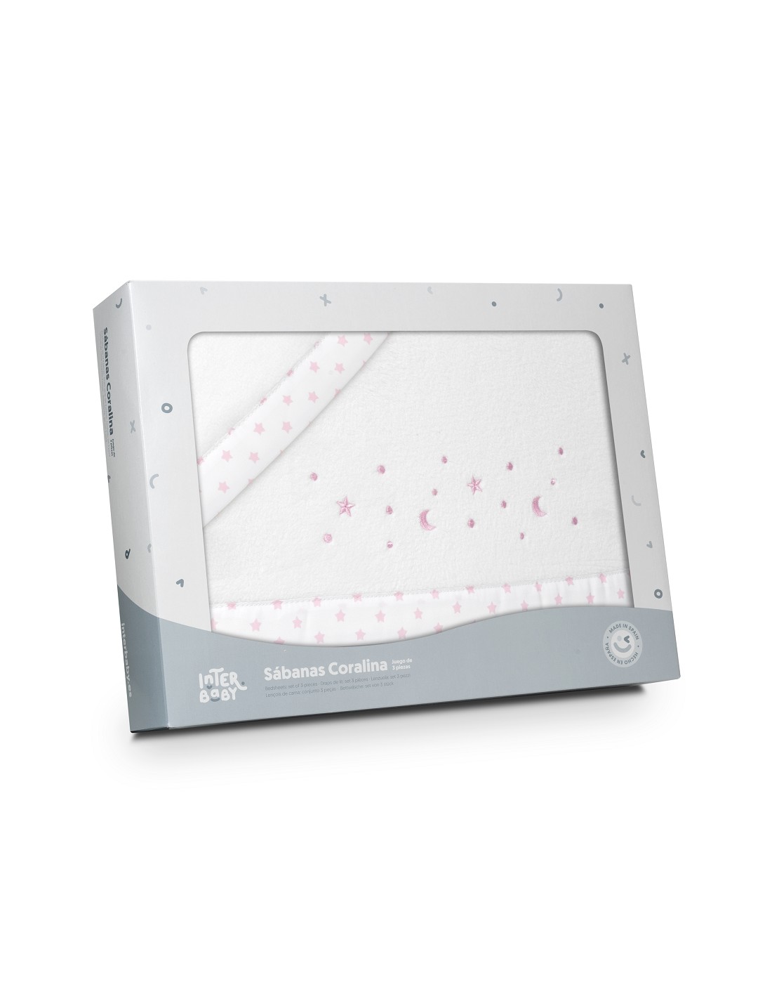 Compuesto por encimera (82 x 114 cm) , bajera (50 x 80 cm) y funda de almohada (50 x 30 cm). 100 % poliester. Lavar en frío.